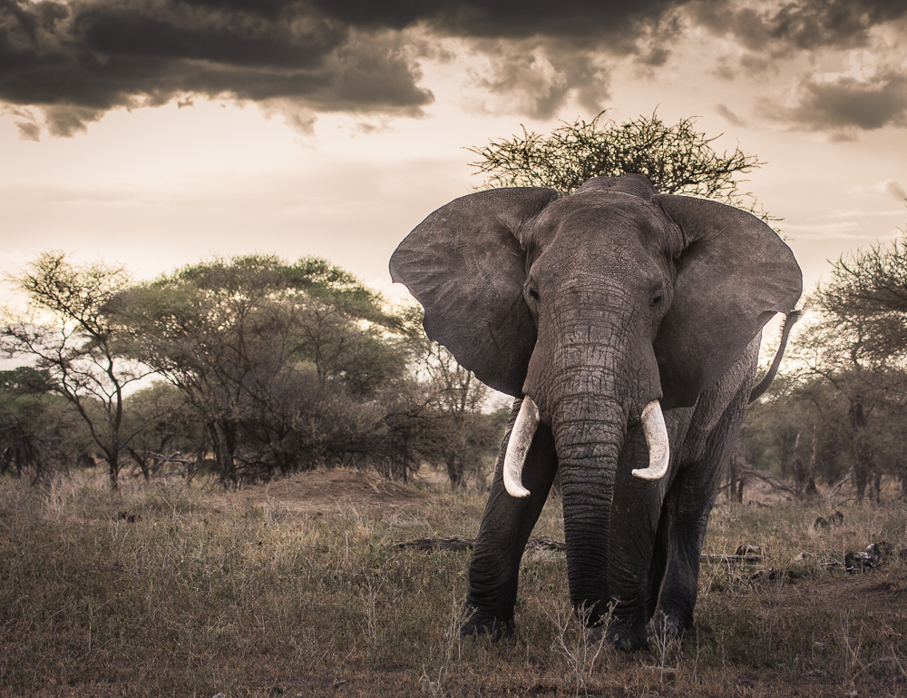 In the evening rushing in the safari vehicle towards the parc gate, we were as surprised as this elephant bull when we met. He stood tall and displayed his ears. The Tarangire National Parc is famous for its elephant population. Because of poaching elephants tend to react more aggressive than in other parts of Tanzania.