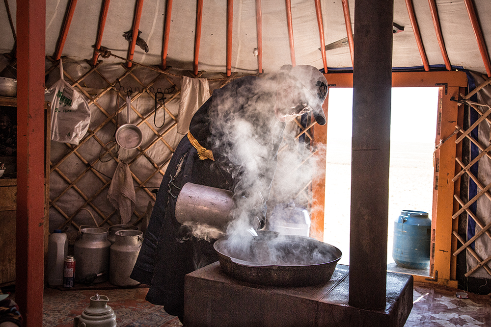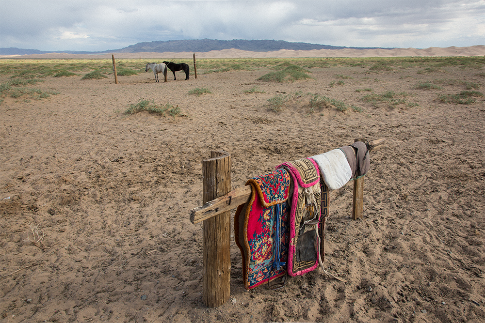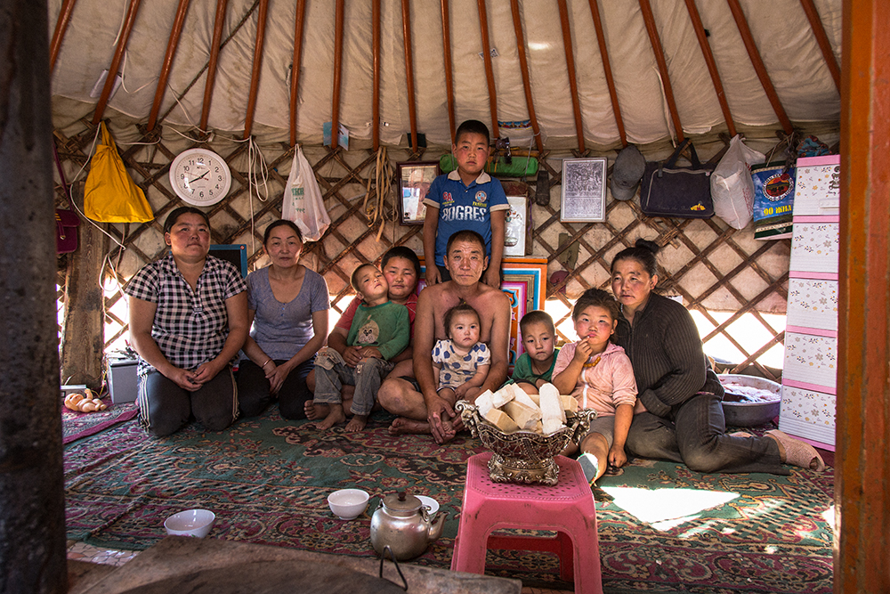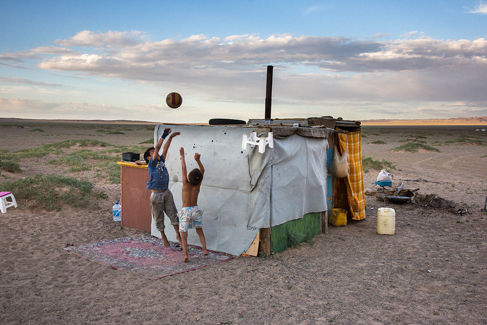 Mongolians have always been nomadic people. Living in a vast and often barren land they rely on their livestock for nourishment. Every morning shepherds leave their gher (tents) and start tending the animals. Being itinerant each shepherd can help himself to another shepherd's gher and resources even if the latter is not at home. At the end of the day their family time is made of simple pleasures. When the time to move comes nomadic family pack their gher up and live. No traces of their passage lasts save a circle in the sand.