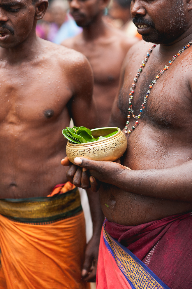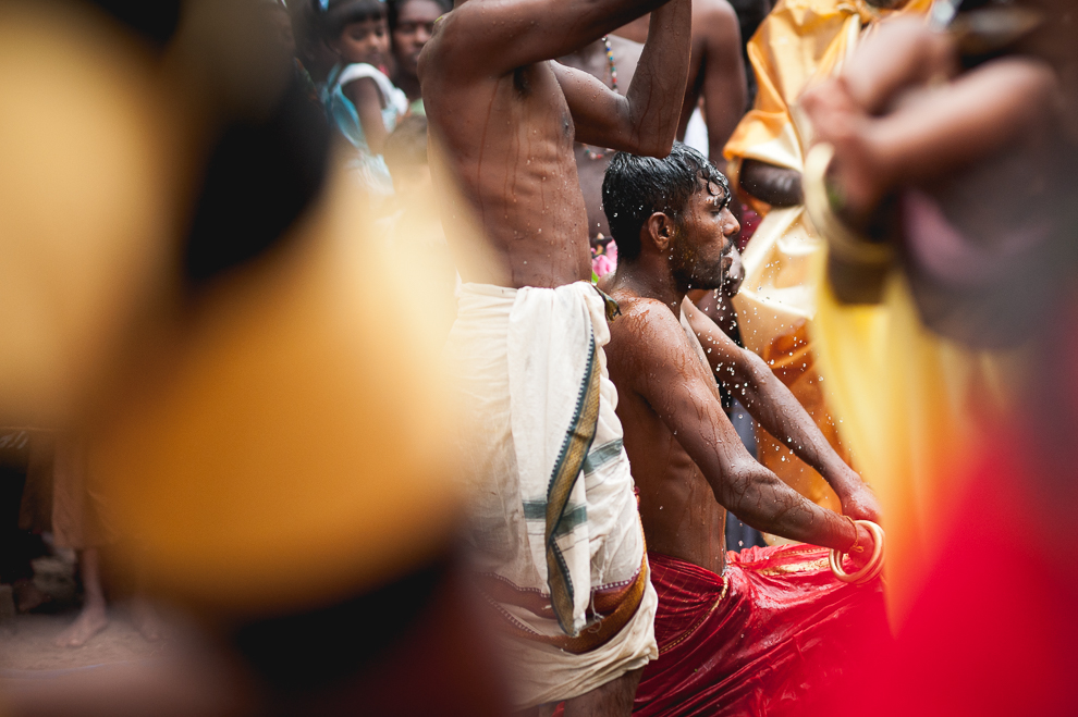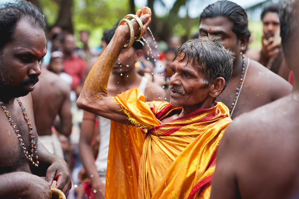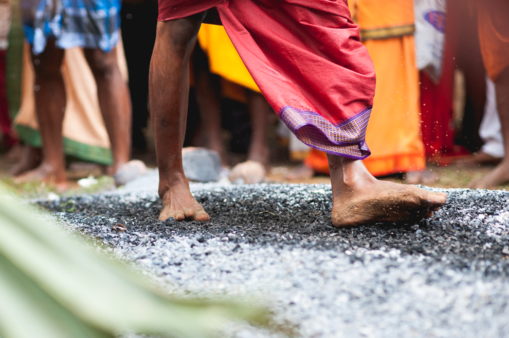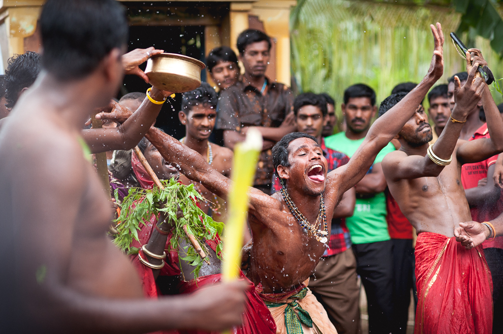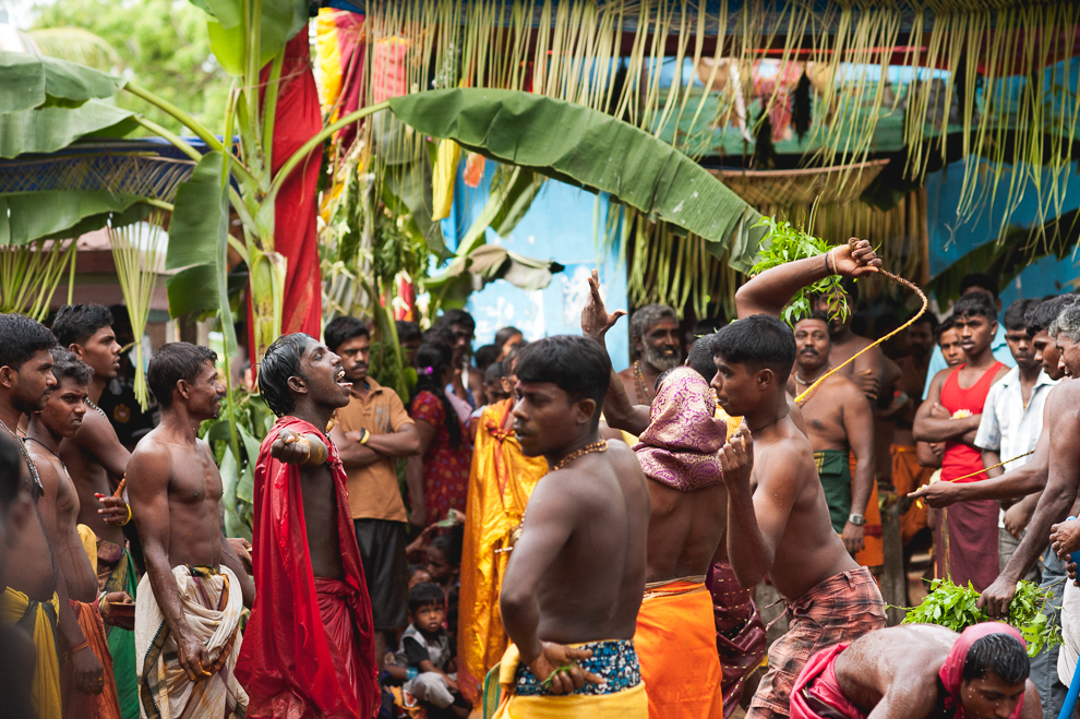 Religious festival in Hindu temple on Sri Lanka. Dance in a trance, flagellation and walks on the coal ambers are performed in front of the main temple.