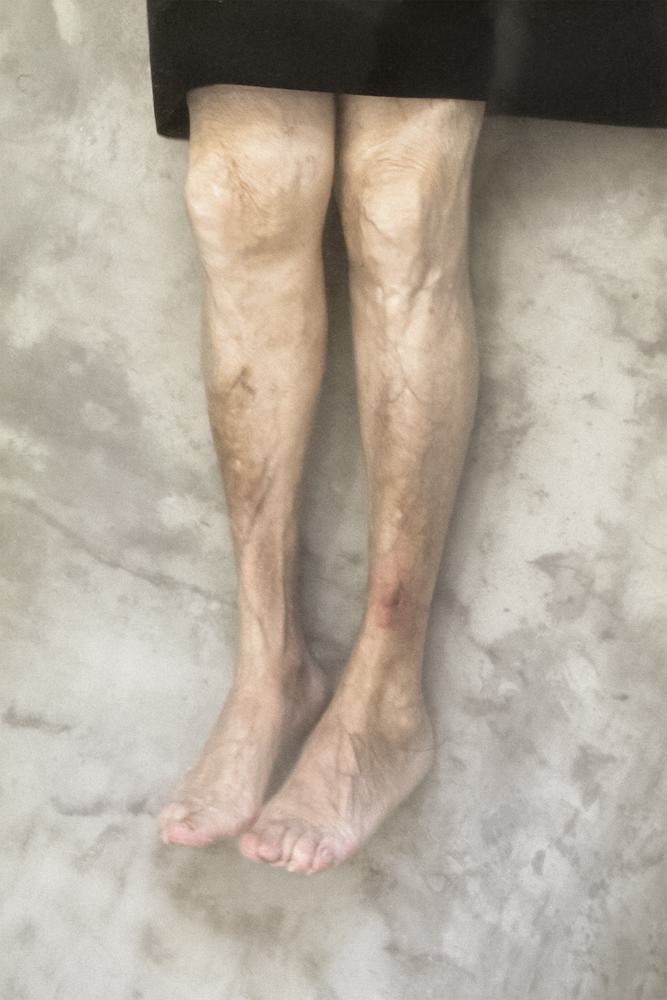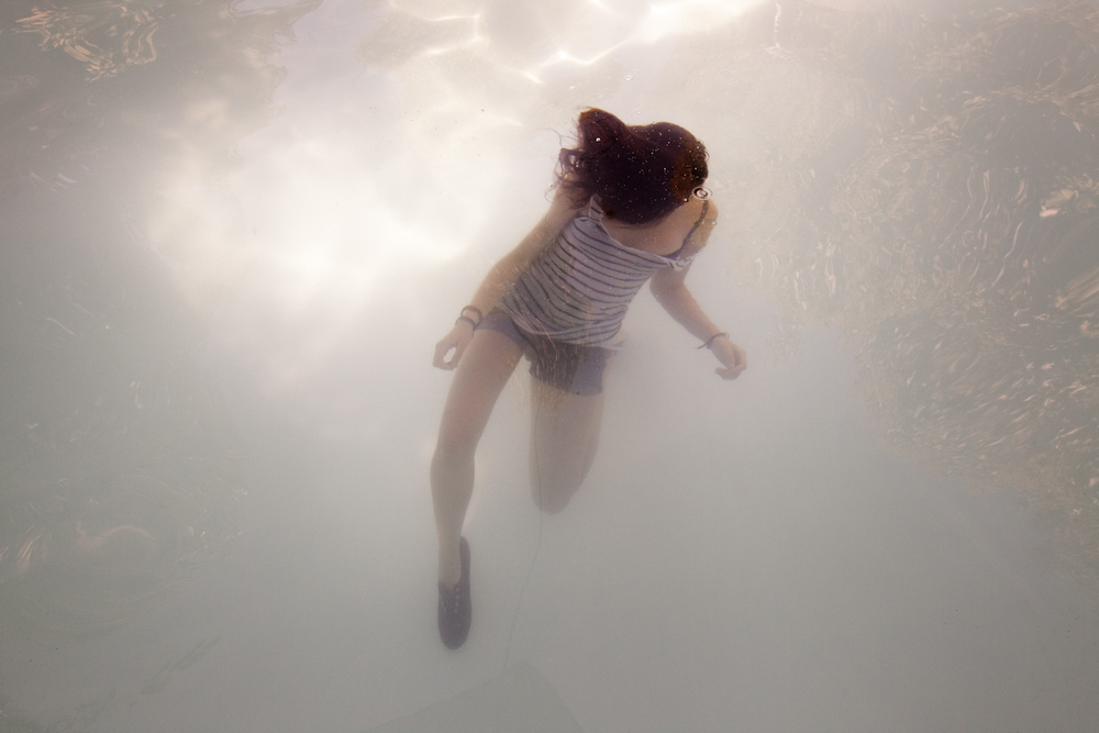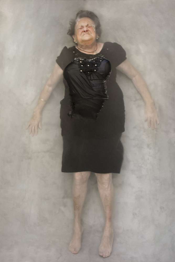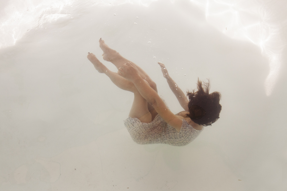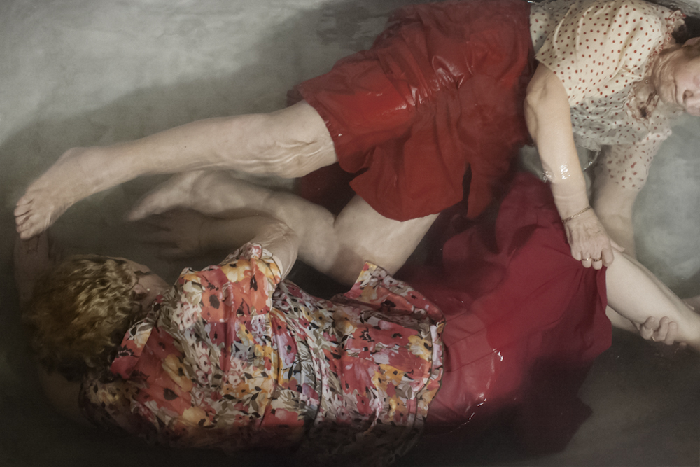In these works, the purest feeling of love and affection can morph into the sharpest and most painful. Certainties of love are turned on their heads and become a fear of loss, a fear that those same certainties might disappear. These are the affects, links, knots and bonds with which Victoria crafts, her starting point being her family, her immediate environment. An olive fermenter from the family business is repurposed as a swimming pool in which to submerge her whole family, from her closest relatives to second and third lines of ascendants and descendents. From this results a collection of suggestive images, which communicate a lot about what Victoria -out of water- could intuit about each of them. Some of its most recent extensions are the recent immersions of her mother, her aunts and of she herself. These immersions open to a much more personal reading, centred on the mother-daughter relationship.