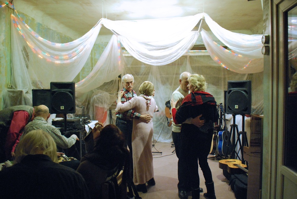 "Sit Silently" portrays the signs of time in rites of subcultures surrounding the capital of Latvia and its outskirts. Pictures of the project capture author's urge for a slower time zone that implies more vivid and open self-expressions, as well as a sense of home and creativity of daily routines beyond the usual urban experience. Within the project the photographer seeks to identify those points where "contemporary Europe" meets different layers of the past (like Soviet and National Awakening period in Latvia) which conflict and complement each other at the same time. These overlapping elements appear creatively in interiors, exteriors, portraits and still-life images depicting everyday and leisurely pastimes. This project is also an author's journey of recreation—escaping from "focus" and looking for her own (Latvian) identity or core, while admiring peripheral moments with their own significance, values and feeling. If, for example, one looks from the East, Kengarags is on the periphery of Riga, Latgale is the periphery of Latvia, and Latvia is the periphery of Europe. The title of the series is an abbreviation of a piece from so called "Google Poetics" and consists of phrases that are popularly searched on the Internet and are associated with the concept of sitting: "Sit silently /sit silently doing nothing / we sit silently and watch the world / we sit silently and watch." This reminds of a passage from Franz Kafka: "You do not need to leave your room. Remain sitting at your table and listen. Do not even listen, simply wait, be quiet, still and solitary. The world will freely offer itself to you to be unmasked, it has no choice, it will roll in ecstasy at your feet."