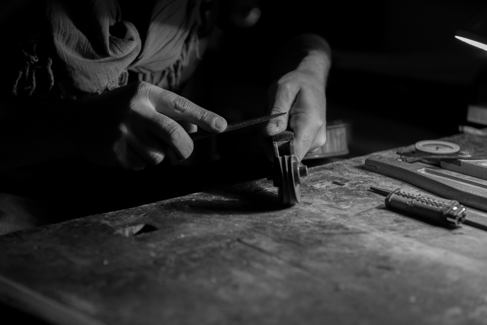 Sequence of shots taken in the workshop of Mr. Gaetano Pucino in the heart of the historic center of Naples . An art that has been handed down for generations , which saw the birth of the raw material from the raw real gems . All made with a lot of patience , assembling piece by piece in the old way ... .