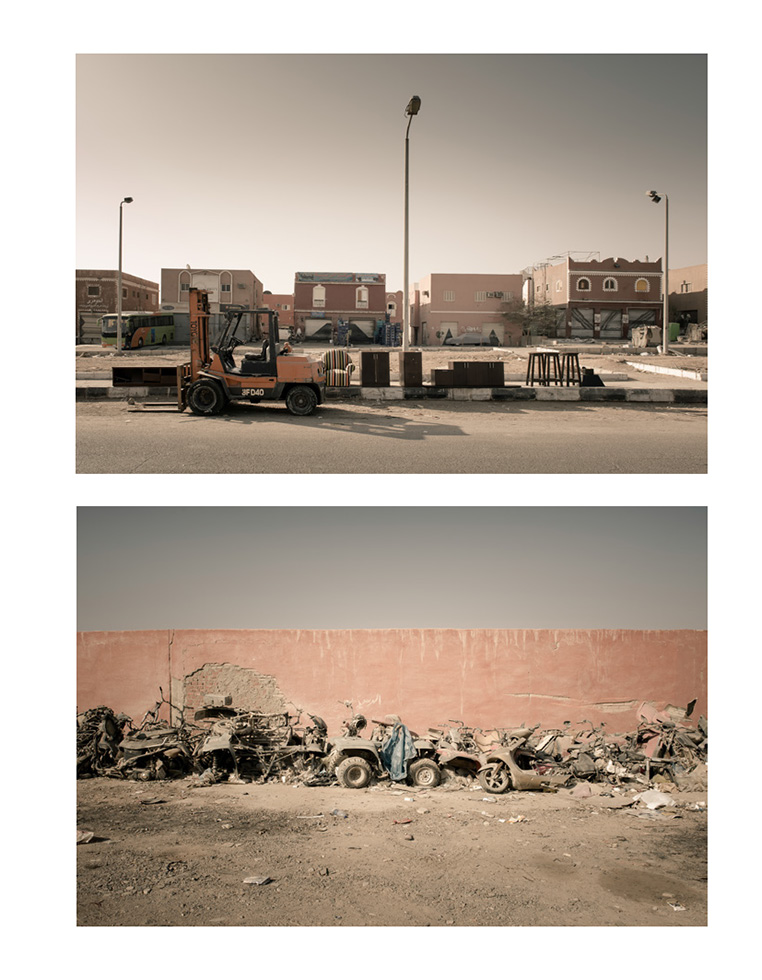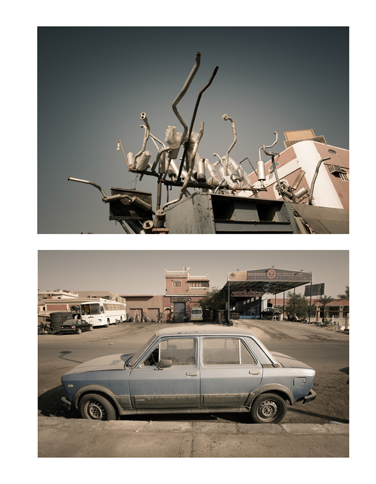 When one thinks of Sharm el-Sheikh immediately comes to mind vacation in large villages, including beautiful beaches, wonderful sea reefs and unforgettable excursions. But in Sharm el-Sheikh, outside the borders of tourism, is lived in a world that seems post-apocalyptic. From the desert land seem to flourish waste and carcasses, that as the memory, are waiting for a hopeful second life. What the tourism consumes and breaks, all seems to be on this land of sand that I wanted to call “Sandlandâ€. The disorder here is synonymous of life, of human presence, its real / fake residents. People from other Egyptian places who reside in Sharm only for work.