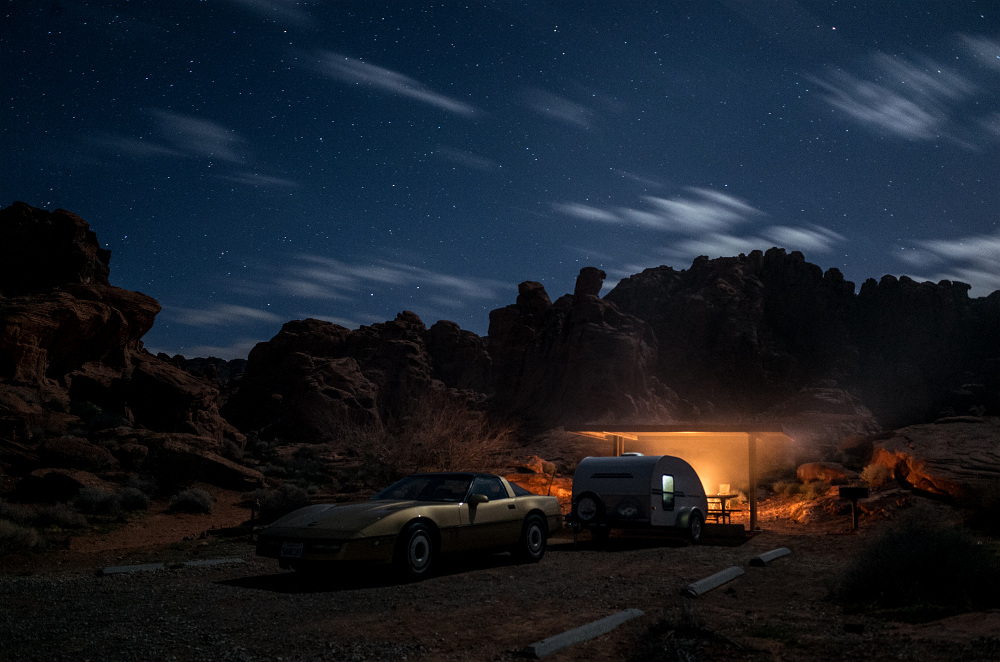 Camping in middle of beautiful night. Valley of Fire State Park in Nevada, USA