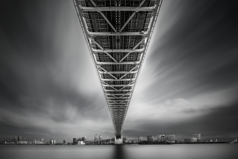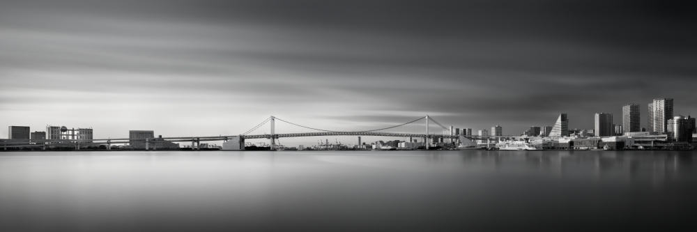 Rainbow Bridge is a symbolic bridge located at the entrance of Tokyo bay, constructed in 1993. Firstly I would like to present the presence of the contrast high rise buildings of Tokyo Bay and strong perspective view of long truss girder of Rainbow Bridge, reflecting sunshine and dynamically flowing clouds based on 5-min long exposure in order to emphasize the contrast from the abstracted sky and sea by the long-exposure. Additionally, I would like to present not only the close distance view based on strong perspective view but also Profile View in order to complete the series of this bridge because generally architect design bridge structures, they never forget to prepare the profile view prior to various detail figures and drawings. This combination, close distance view and profile panoramic view may complete the series of real bridge from the point of view of structurally and photographically.