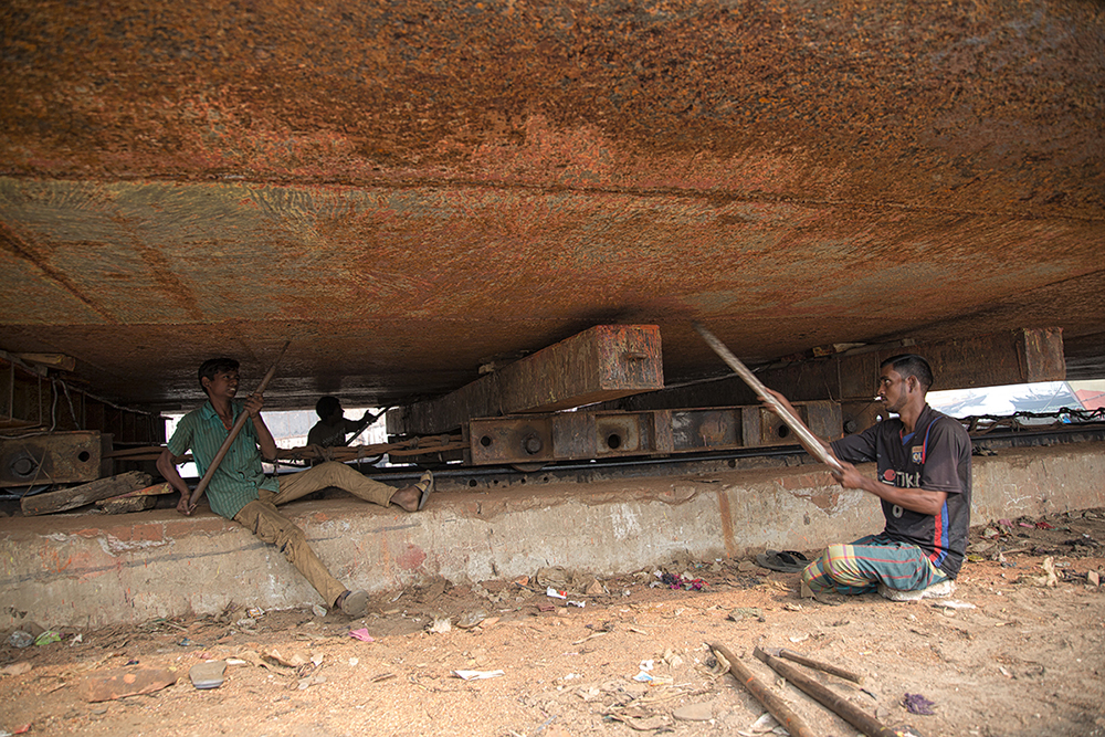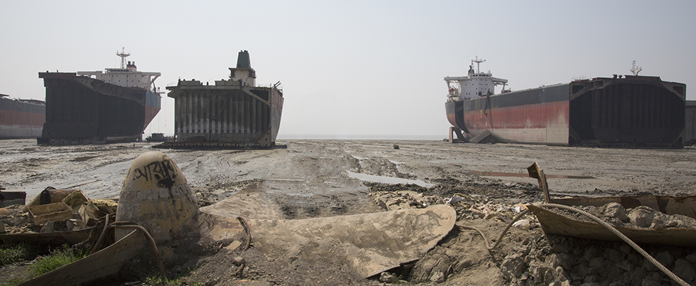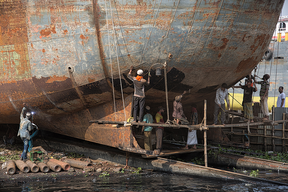Fishing vessels, merchant ships, huge oil tankers: they have been designed and built for resisting to the waves of the ocean in a storm, for lasting decades and carry huge cargoes around the world: but what happens when their end comes, when the last trip begins? According to international laws, to prevent accidents or sanctions for using of inappropriate or dangerous means, the ships have an average life of 25-30 years. After this period the big shipping companies have to dismantle them, because the increase of the insurance and maintenance of worn means makes their use disadvantageous. As the dismantling in industrialized countries is much more expensive and is under to many rules and controls, thanks also to the trade unions, most of the demolition takes place in Asia, especially in Bangladesh, India and Pakistan, where the labor is very low costs and the controls on working conditions are non existent. The rates, in particular in Bangladesh, may also be below 50%. Instead of in a shipyard it seems to be in a circle of Dante, where the incessant noise of hammers and electric cutting machines on the sides of the vessels is backbreaking. Only In the city are more than 10 thousand the people working in the vessels demolition In the capital Dhaka and in Chittangong, the second city of country, every year more than 200 big vessels are dismantled, this is a very profitable activity for those who manage it. A medium-sized vessel, for for 3-4 working months, can make from 800 to 900 thousand euro. The profit is due to the recycling of over 90% of the entire hull Most of the vessels are totally dismantled, and some others are repaired with second hand parts and sold for use limited only to Bengali waters. Aftermath, what happen after, is a photographic research not only on the vessels cemeteries, but also and especially on the exploitation conditions of the man, the daily life of these workers.