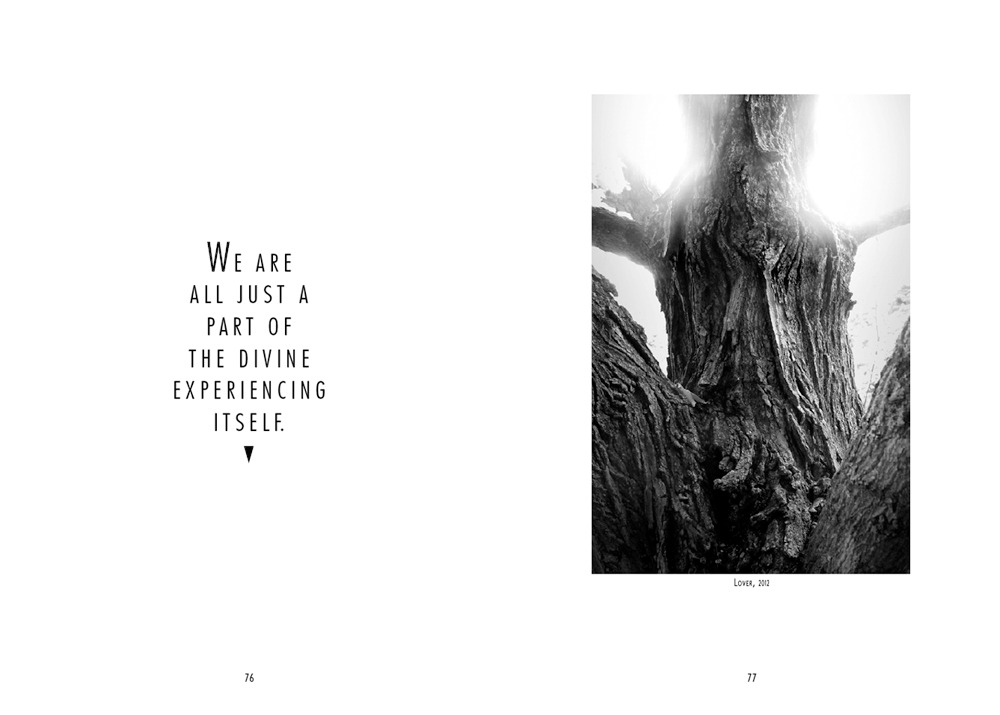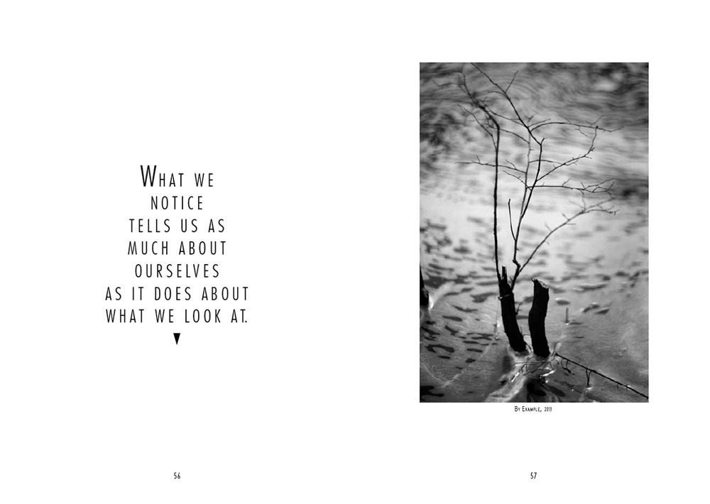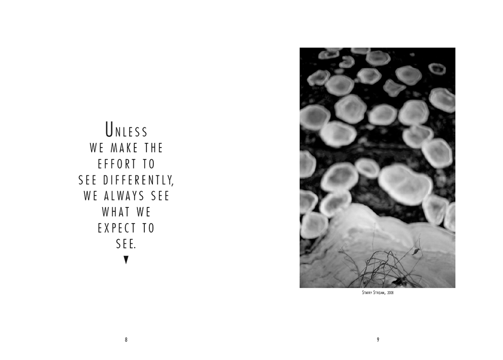 "Bodies, trees, antique cars... they're all just atoms in the light. We can make whatever we imagine from them, and in the process learn all about the being we are, who notices what we notice." This book matches black and white photographs I have made with statements I have said regarding insights I have experienced. The photographs can be a resting place between the insights, or a visual that expands upon the words in a way that words alone can not do. Photographer Connie Imboden wrote the foreword, and David Bayles,co-author of "Art and Fear" wrote a back cover blurb. This book has won two finalist medals in the 2015 Next Generation Indie Book Awards, for Overall Design and Motivational categories and First Place in the 2016 IPA, International Photography Awards for Professional: Book: Self Published.