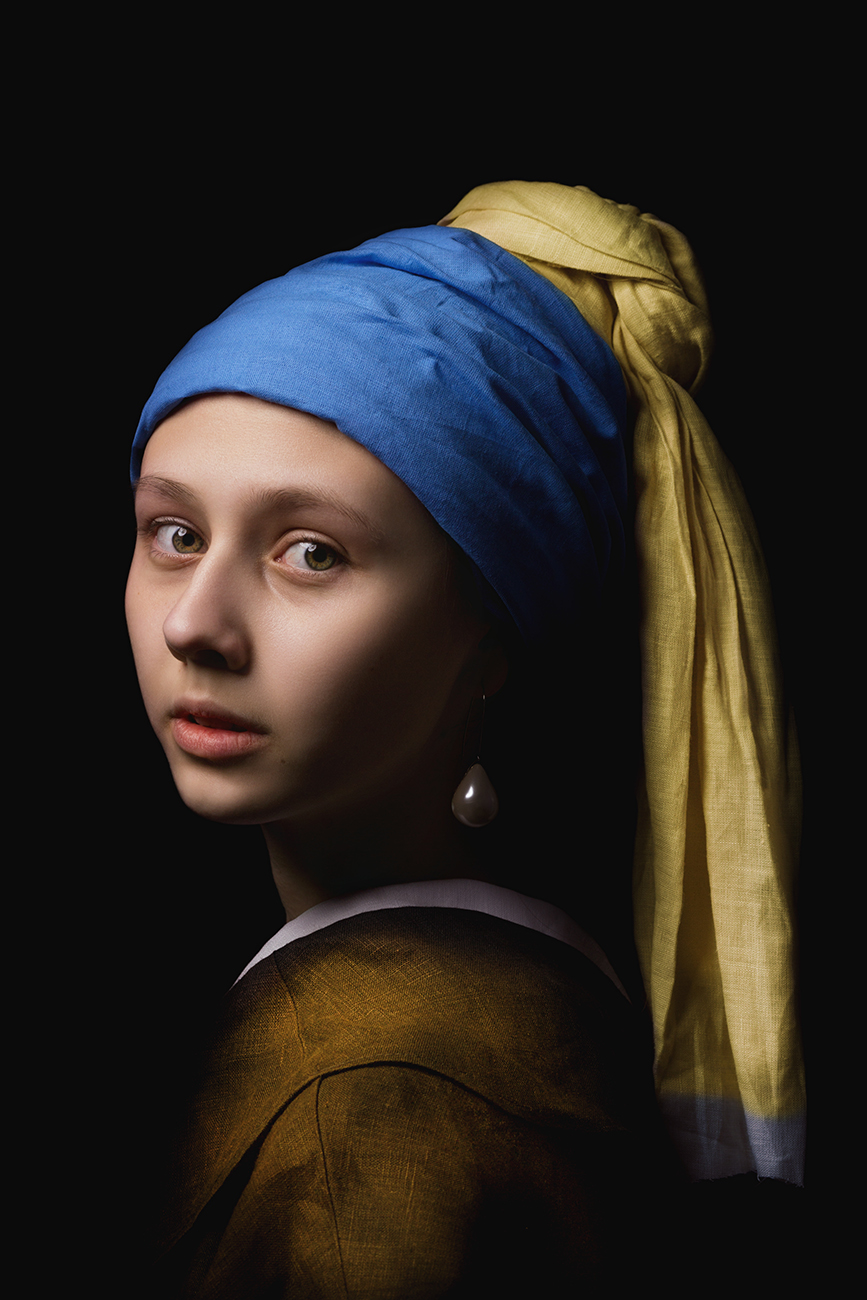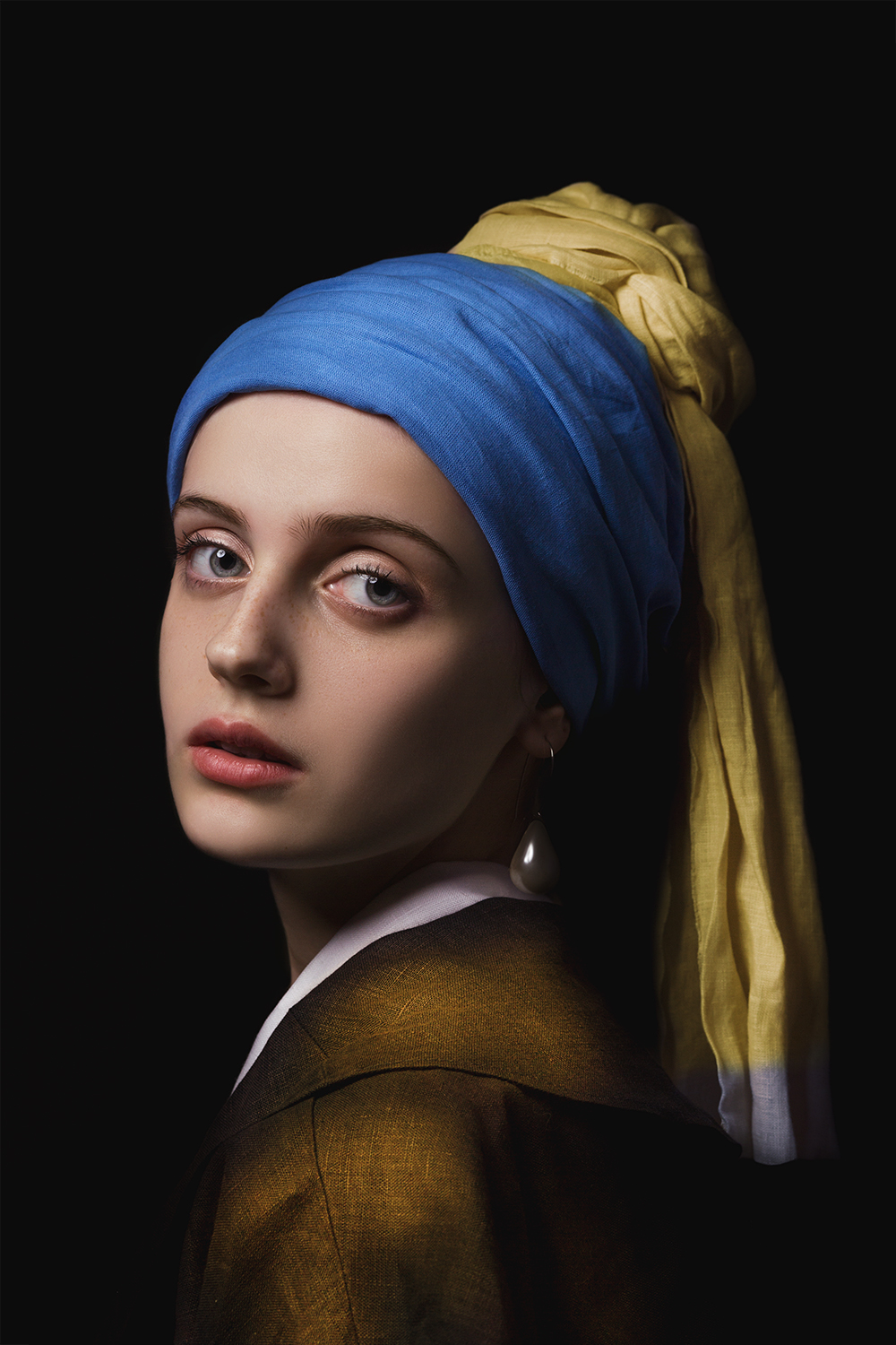 Preface: “I’d like to express my greatest gratitude to the outstanding artist Jan Vermeer for the opportunity to work inspired by his masterpiece. Most likely, he thought that his painting "Girl with a pearl earring" was finished; however, I suggest continuing work on his masterpiece. Even the Eternal sometimes needs breathing life into it for continuation of new existence and discovery of new feelings". «Girl with a pearl earring». The name is the hidden code without need for intricate interpretation to lift the veil of success of a picture and to be lost in thoughts. Let’s imagine the girl without accessories, and the picture named "The girl without pearl earring". This irony is a direct hint on the fact, that the accents placed by the artist in a picture give viewers a reason for more profound discussion. For example, pearl and a turban emphasize the status of the girl or on the contrary, the artist has given to the simple servant the chance to plunge into luxury … I am sure of one thing: pearls are extracted at depths and the girl's eyes reflect this depth. The fact that people of diverse material and social status will pay attention to different accents at the first glance to a picture deserves special attention. "When a person watches art, perhaps, he is a part of an excursion. When a person watches an excursion, perhaps, he a part of art". © Dasha Matrosova It is of great worth to become a part of art. This good fortune turned up to me, and these new "Girls with a pearl earring". Everyone left the unique appearance and a glance in art. Only accessories stayed invariable.