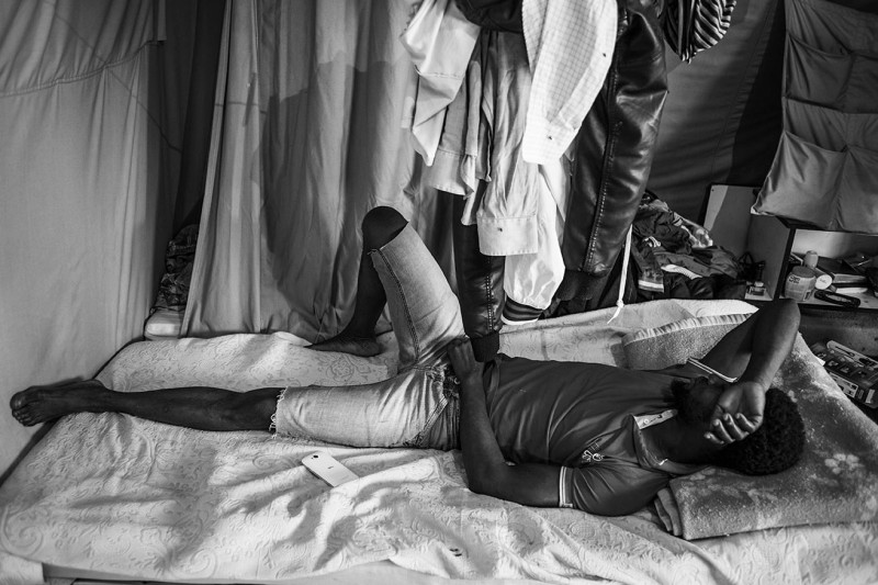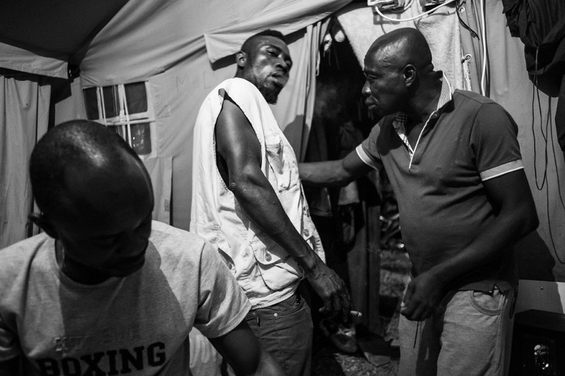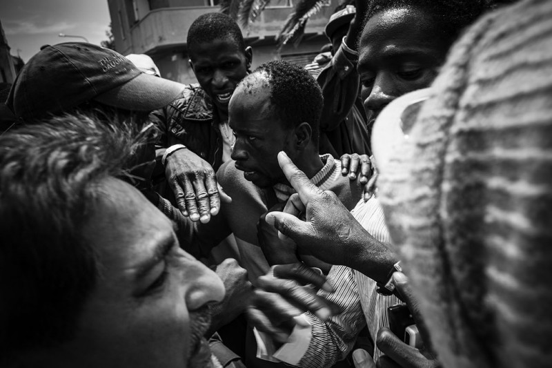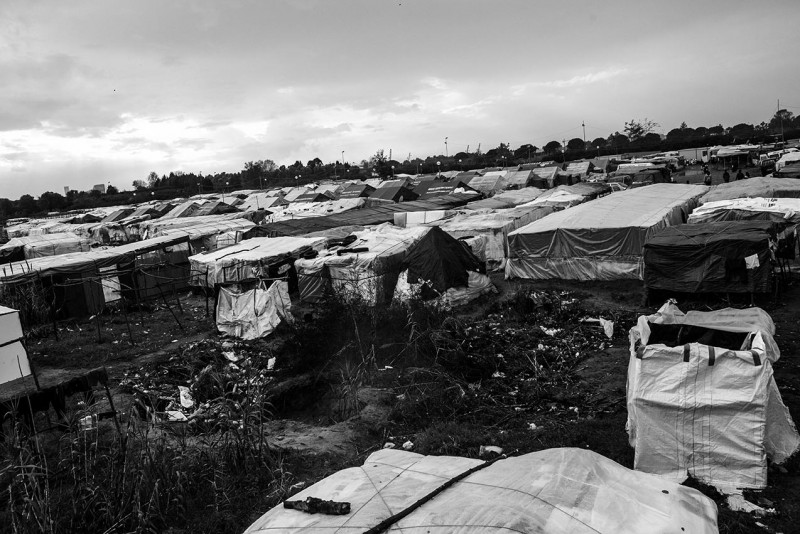 A refugees camp near Rosarno in South Italy. It was thinking ,from the italian government, for 300 people but in the winter's mounths is invade by over than 1500 people. They pick oranges earning 20 euros a day. The living conditions have become intolerable due to lack of funds for the management of the place. About 70 women from Nigeria were arrived in the camp, six months ago, and for survive they should to sell them body. My work witnesses this place between 2015-2016, and a field where the workers pick orange and a protest in San Ferdinando after the kill of Sekine Traore, a guy from Mali 27 years old, killed by a police man, in June 2016.