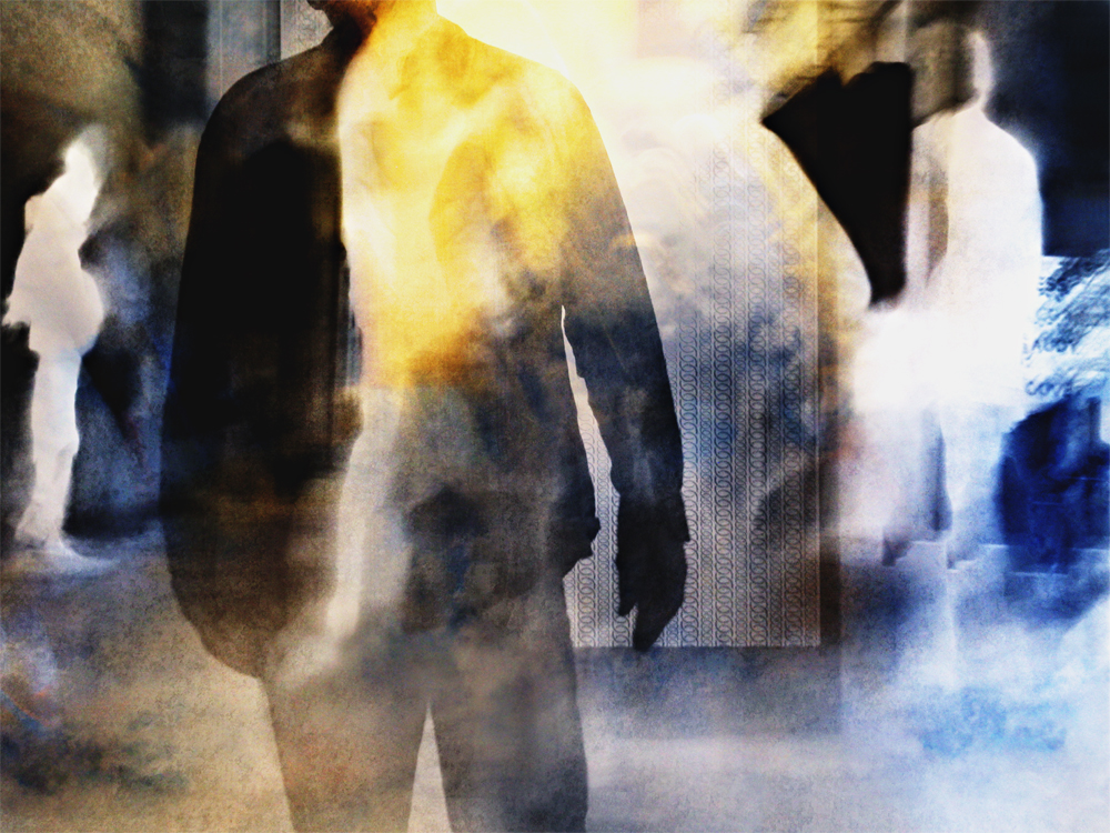 These are digital photo composites. They are not planned or staged, but are found, captured and whole photos are combined in Photoshop. I find the silhouette images interesting and mysterious, as there is no sense of who they are, where they are or what they are doing. I try to make images unlike those I've seen before-- in this case, a little on the dark side. There is always the surprise of discovery, the search for something unique, and the irony of making photos that may not eventually resemble photographs.