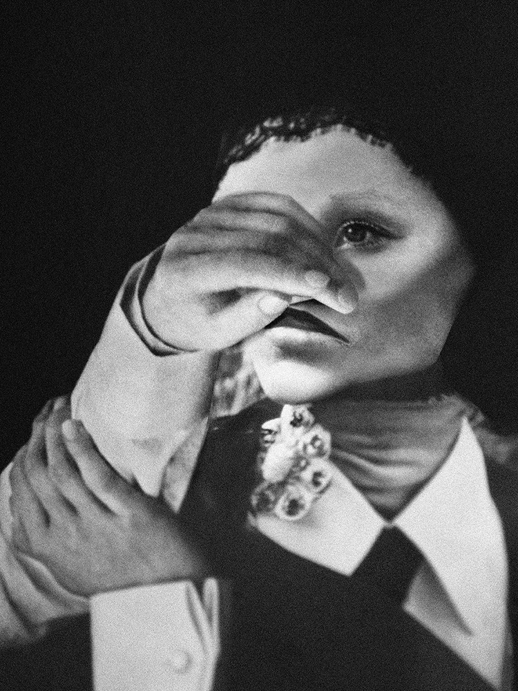The pictures of the series focus on intimate issues such as inner conflict, wrong self-perception, the human psyche and the pressure exerted by the fashion industry. The work aims at blurring the line between classical portrait photography and fashion photography, to place the human body at the heart of the picture. It provides a bird's eye view of the physical and psychological fragility of the human being, illustrating the gap between people's self-expression and the way they perceive themselves. Other recurrent themes include the exploration of the public and private spheres and the social role of woman. Thanks to an analog manipulation, combined with varied techniques developed by the artist, the digital photographs of the series undergo careful disorders which render the psychological turmoil.