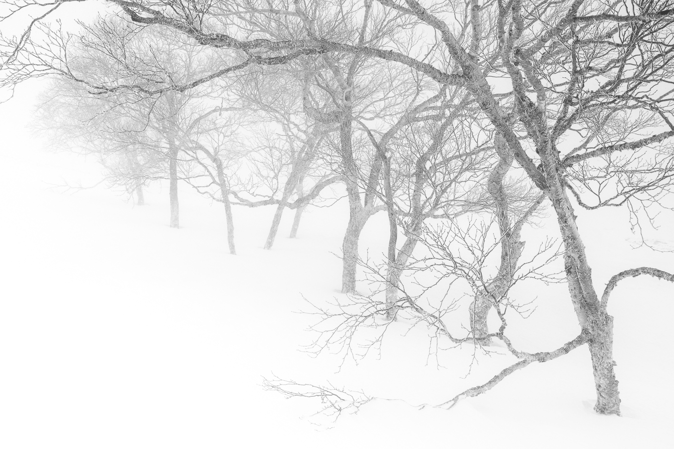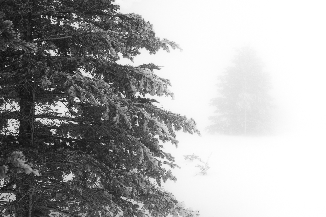 Unclear visibility means possibility of death in the snowy mountains. I expressed fear and relief in these photos.
