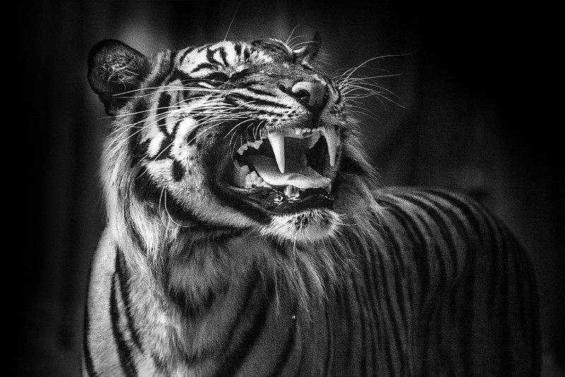 You can see three picture. Two of them about sumatran tiger and the third is a bengal. The first two show the tipic sniff of them, and the third is when he finishes the roar.