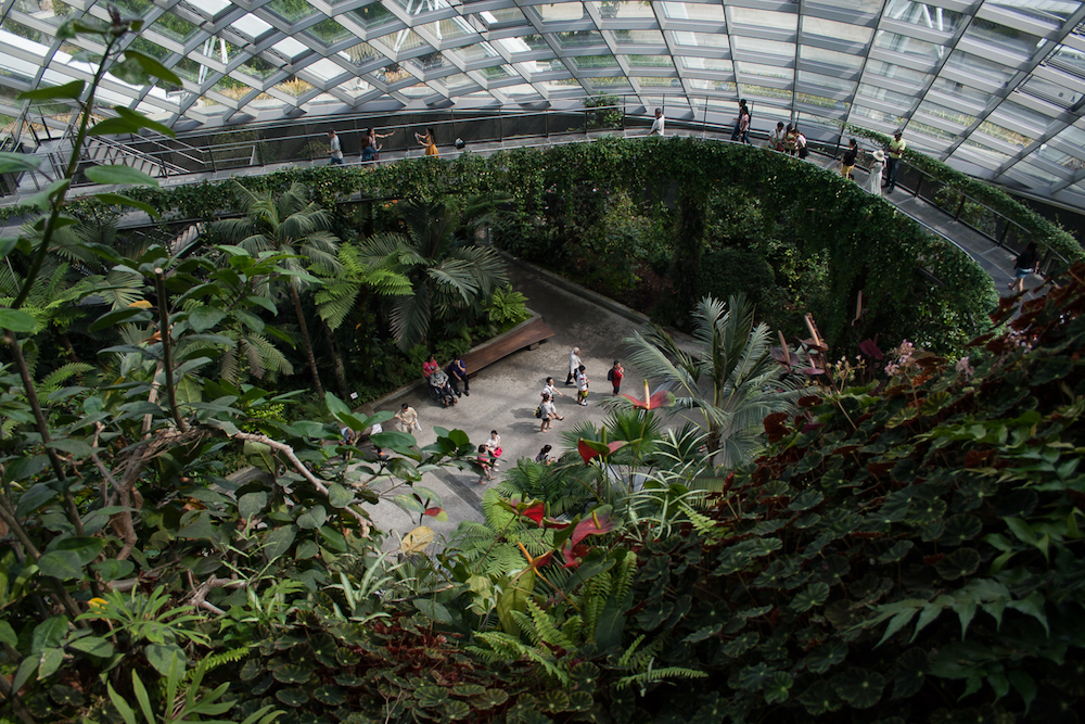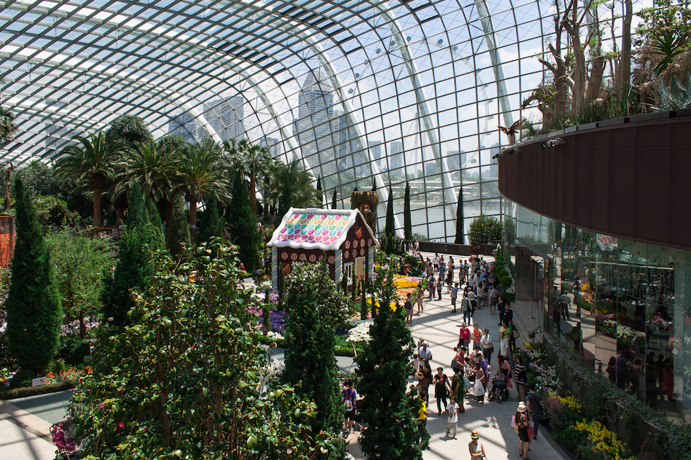 After independence in 1965 and the subsequent fast population growth, the reduced area of Singapore has grown to now 25% through a continuous land removal from the sea. The estimate is that it will grow by another 100 km2 by 2030. The new Gardens by the Bay is a park of about 1 km2 of reclaimed area, adjacent to the reservoir Marina Reservoir. Built with the idea of transforming Singapore into a "City in the Garden" it consists of two huge domes that mimic natural environments uncommon in Singapore, showing plants from the Mediterranean or tropical areas, and a forest of artificial trees that create an autonomous ecosystem to recycle the water and adjust the temperature of domes and accumulate solar energy. In recent years, Singapore has experienced a high air pollution due to Haze, the ash due to fires in neighboring Malaysia for deforestation, so the new garden built an environment to hang out in the days of more pollution. In 2016, a new epoch dating, the Anthropocene, it was proposed to designate the era since the mid-20th century in which the main causes of territorial changes, structural and climatic, are attributed to humans and its activities. It seems that we have not been able to find a better solution than building private havens.