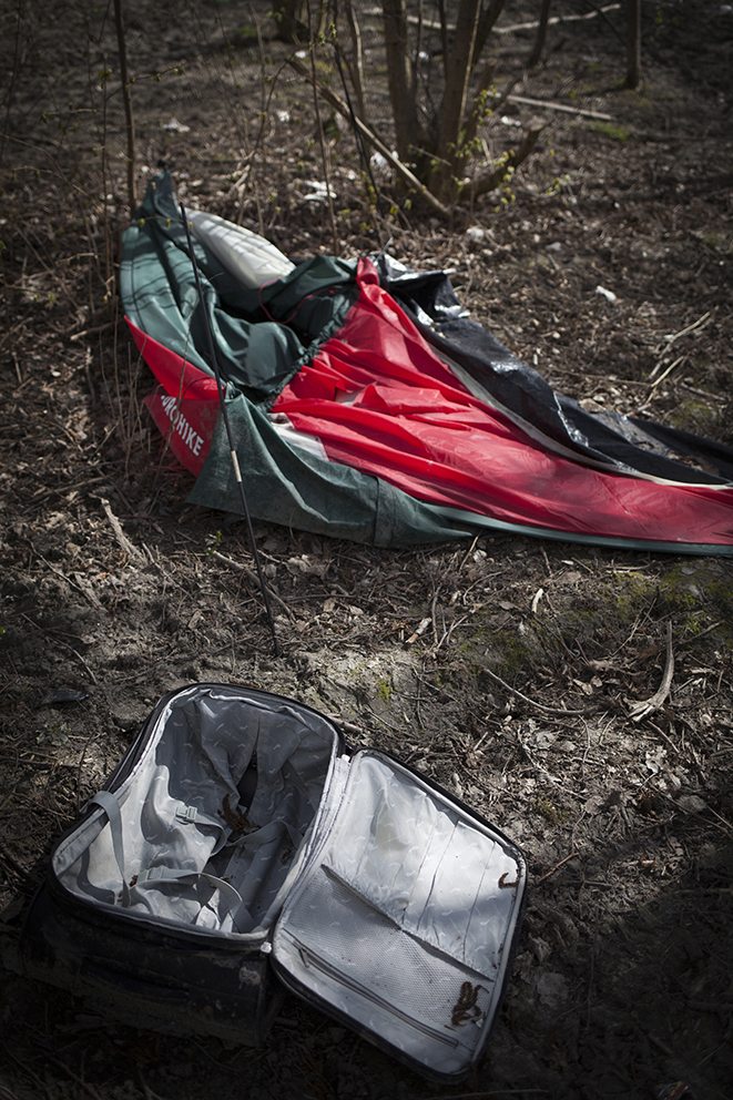 On the 7th of March 2016 the Grande Synthe refugee camp is cleared by the French military police. The refugee camp was situated in an ecological area next to a residential district. The majority of the 2000 residents were Iraqi Kurds fleeing the violence from IS. Although the police action was announced and coordinated by the municipality, the refugees had to leave in a hurry and could only bring one bag to the new camp. One month after the clearing the personal belongings they had to leave behind remain as a scar in the ecological area. They are a reminder of the suffering that took place in this camp.