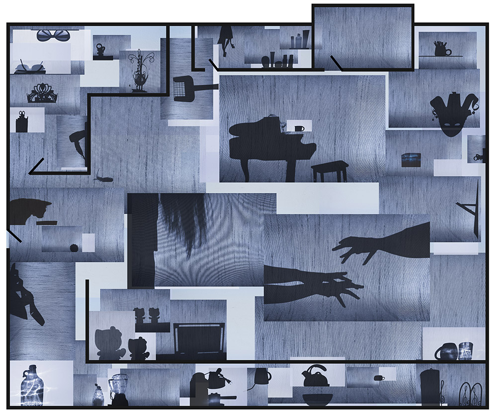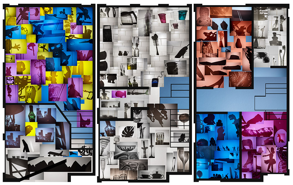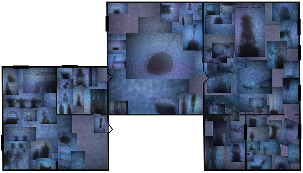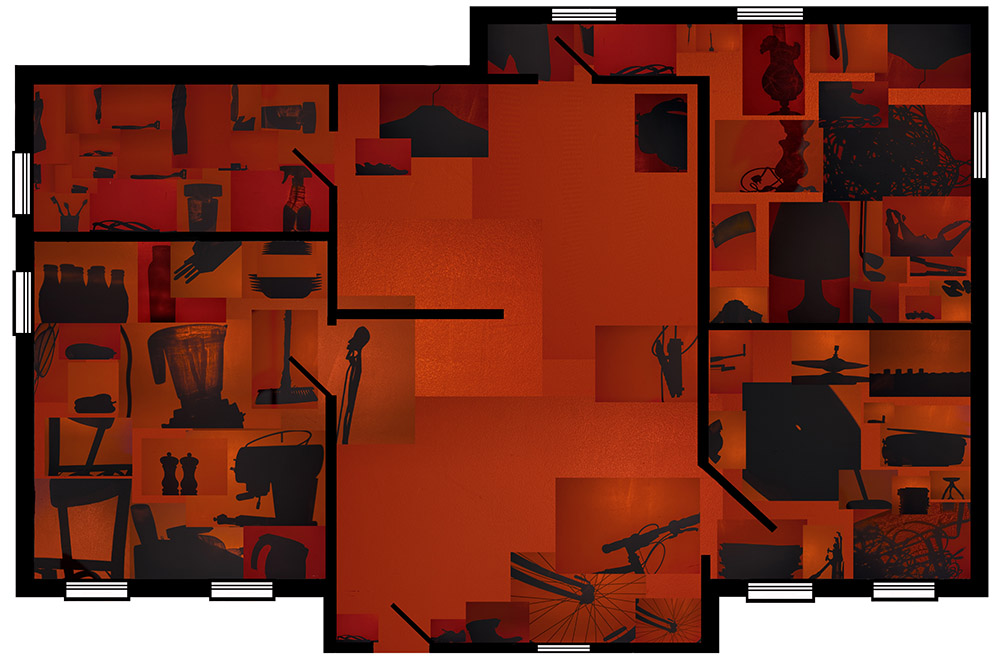 A silent piano, scattered cymbals in the music room, eight hats all over the tiny bedroom, high heels in the walking-in closet, colorful round John Lennon’s glasses, faded dead flowers still releasing a sweet smell, toys fighting each other in the basement, crucifixes, fruit shaped candles, smoke, incense, lace and saints. “Blueprints†gravitates towards the notion that our home is the reflection of ourselves. Instead of conventional photographic portraiture, in this body of work I reveal the personalities of my subjects by depicting the contents of their homes. “Blueprints†do resemble architectural floor plans; however, they are in fact an unusual form of portrait.