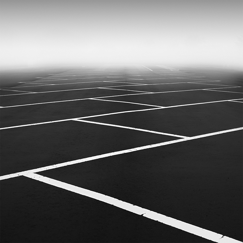 Five images of parking lots selected from my on going project ".Rhythm" which is focused on the visual minimalistic rhythm brought by both of sequential pattern of white line and elegant contrast between asphalt and white line.