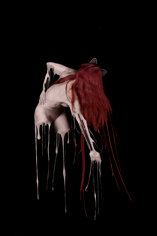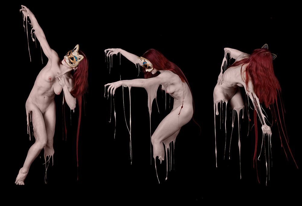 Surreal and Dreamlike Triptych as a tribute to Dalà and to the great surrealist avant-garde. Created merging the model body with real dripping paint (photographed separately).