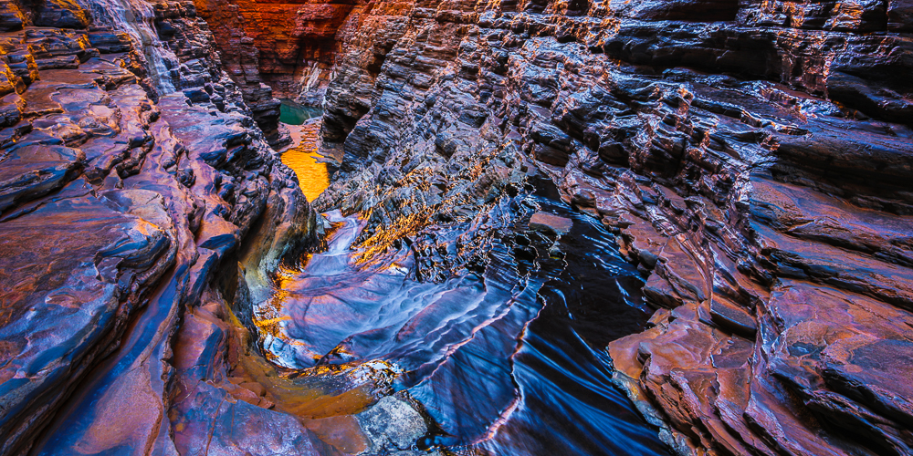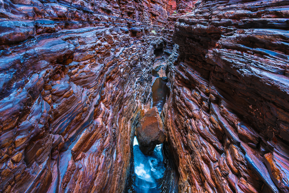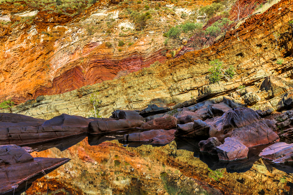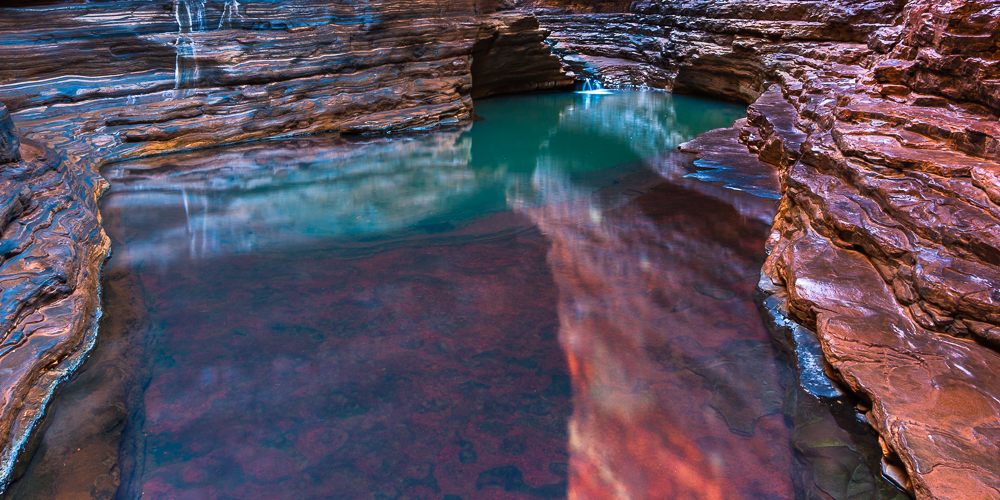 This remote gorge in Western Australia is striking with it's surreal colours and different layers of rock formations.