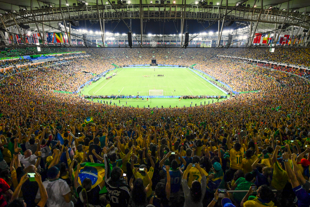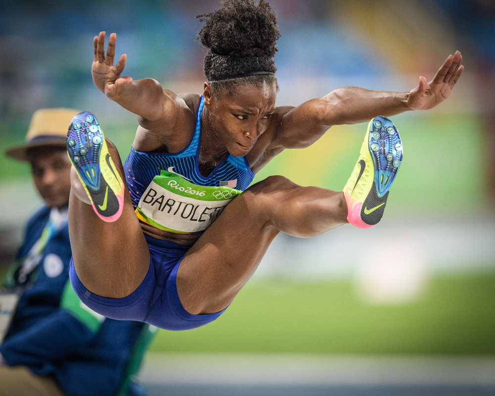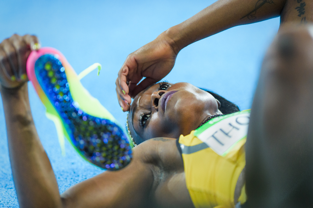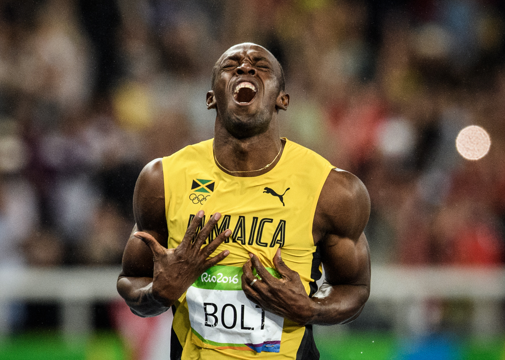 Rio 2016 Olympics: the peak of achievement for the Olympic athlete is the gold medal. Their training, their whole life is driven by the desire to become the world's best. In this series I aim to capture the moment of glory; every shot registers the emotion of history being made. I wanted to create still images of the explosion of triumph for which these athletes in this series fought with the entirety of their being. Bolt open the series with his most passionate reaction to winning throughout the Games, when crossing the 200m finish line; then Team GB also crossing the line in jubilation and Mo Farah, crossing the line with his arms like Rio's Redeemer, shocked with his win after falling in the race earlier. The exultation of the spectators packing the iconic Maracana and screaming alongside 200 million football fanatics at the precise moment the ball hits the back of the net, and Neymar celebrates Brazil's first Olympic football gold. Then the series moves to shots of Simone, Phelps and Bartoletta in amazing action for their medals. The series end, here, with Elaine Thompson stretched on the track, shocked as her 200m gold, winning her a 'sprint double', sinks in- pure epiphany.