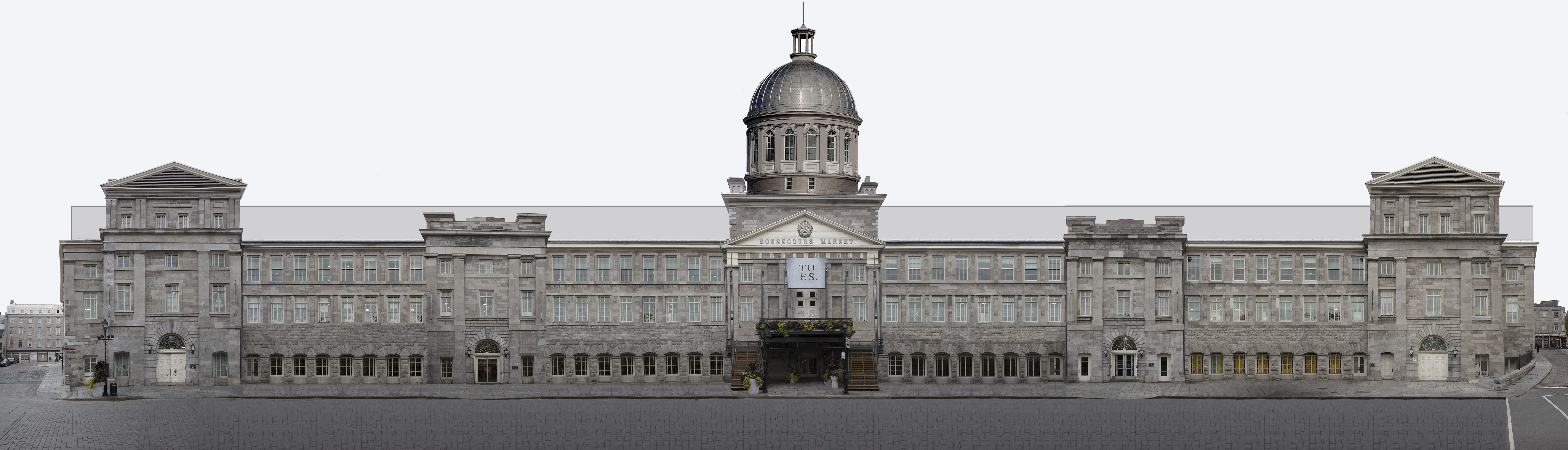 This technique that I call straight line panorama is more advance that what it is known by a few as linear panorama. To capture this panorama of the Bonsecours Market in Montreal Canada, I shot around 120 pictures to minimalize any perspective effect. To achieve the final image, several hundred layers in Photoshop are required because conventional stitching will not work. The resulting final image is very close to a drawing, reproducing in real life the original vision of the architect.
