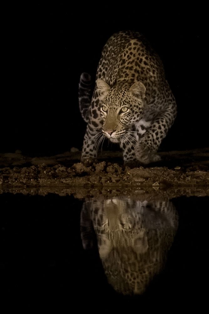 It was my first time in an overnight hide and I was incredibly nervous, having never shot in the dark before. I wait what seemed like hours before, a whisper of movement caught my eye. A leopard! It was cautiously making it's way to drink, completely silent. I held my breath and even tried to stilled my heart and I pressed the shutter. I was totally shocked that I captured a shot, and thrilled beyond belief.