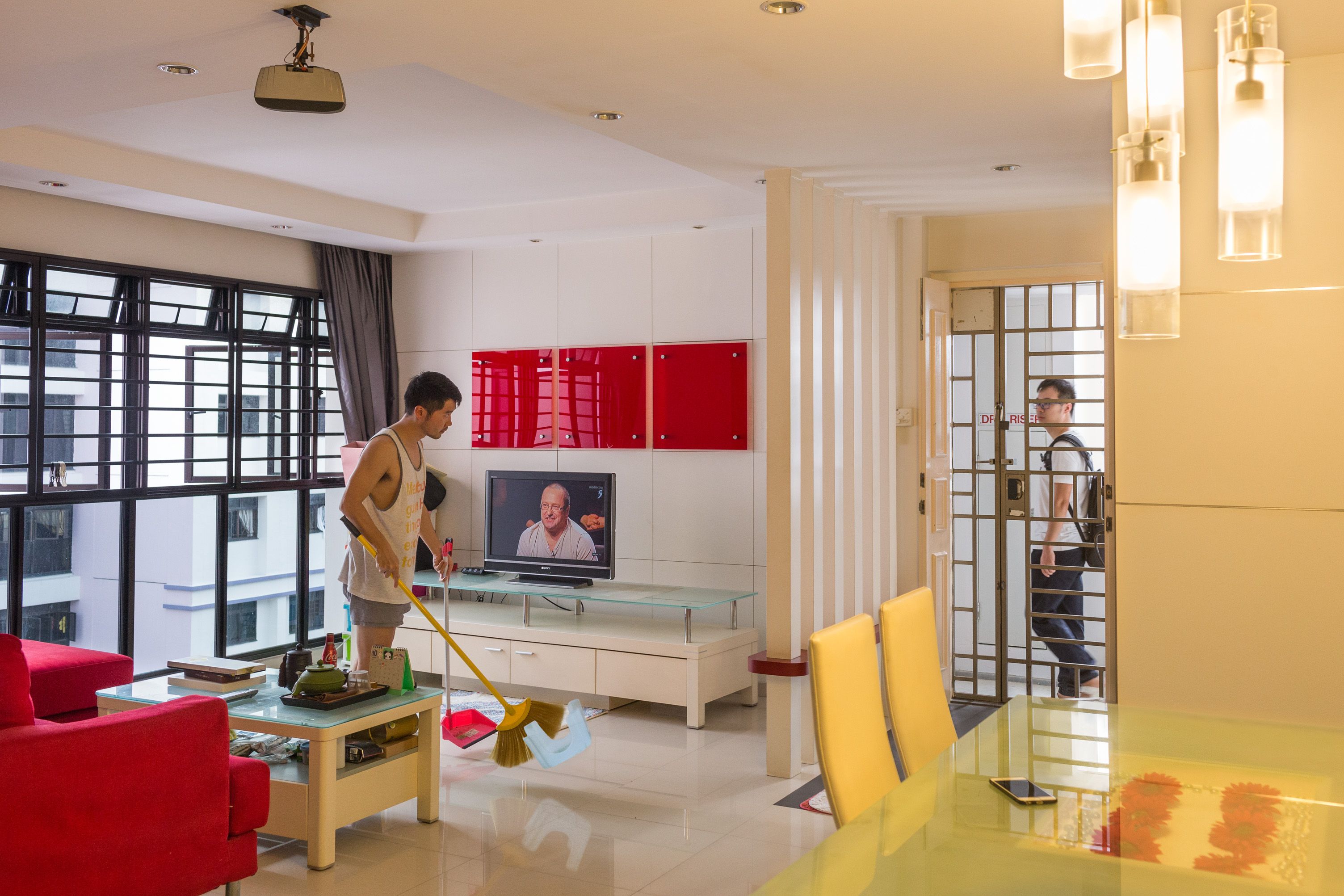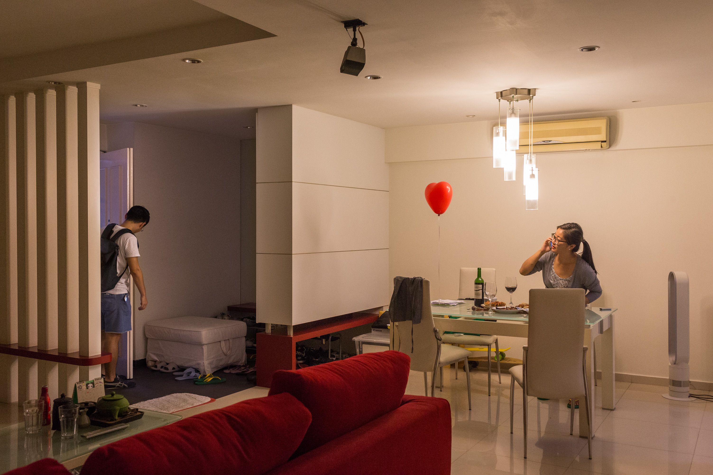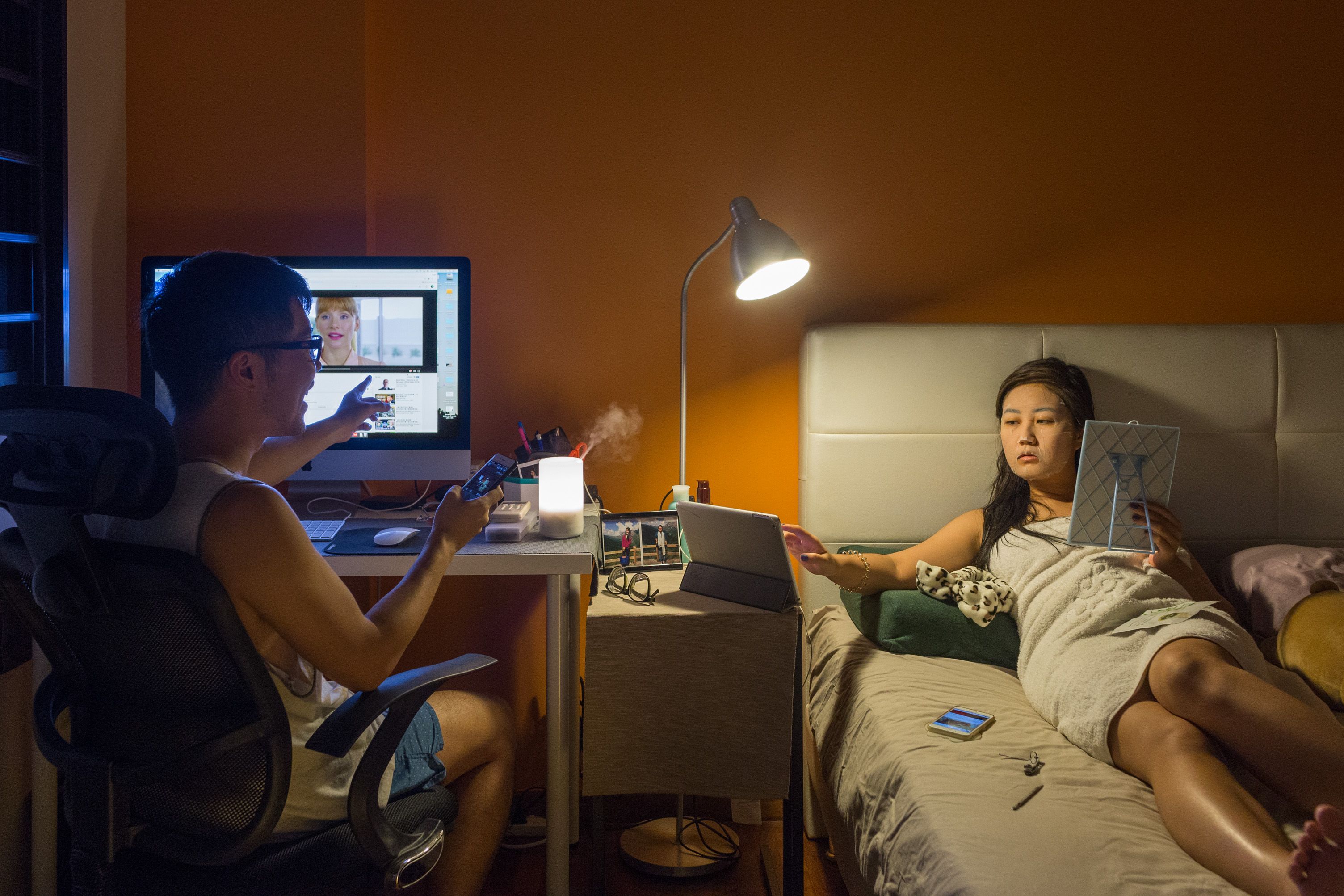 These photos demonstrate a young couple's life in Singapore, which emphasises the notion of beauty, pleasure and art of everyday life. And I'm examining weather reality is important in photography, as the photos are all staged, stitched digitally, but relatively real, concerning the impression of absorption and the illusion of reality. The interior setting is real. The characters are actually living in this room and what they acted is close to their own life as if the photographer is doing a reportage.