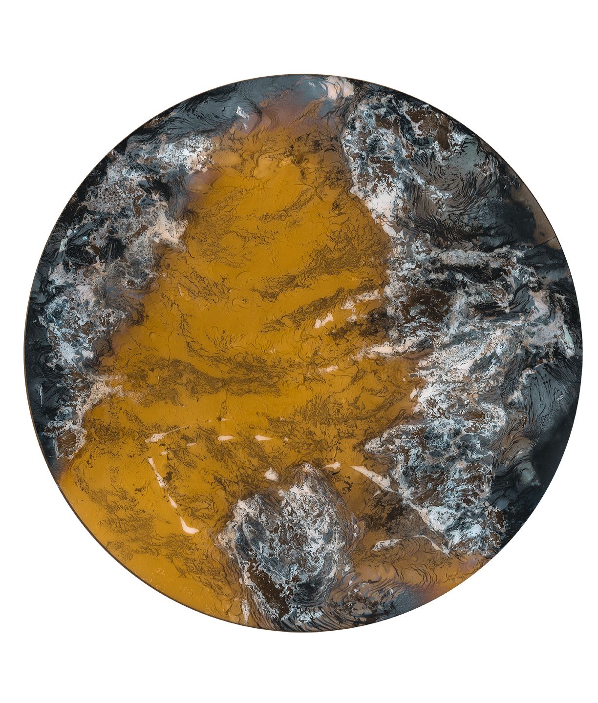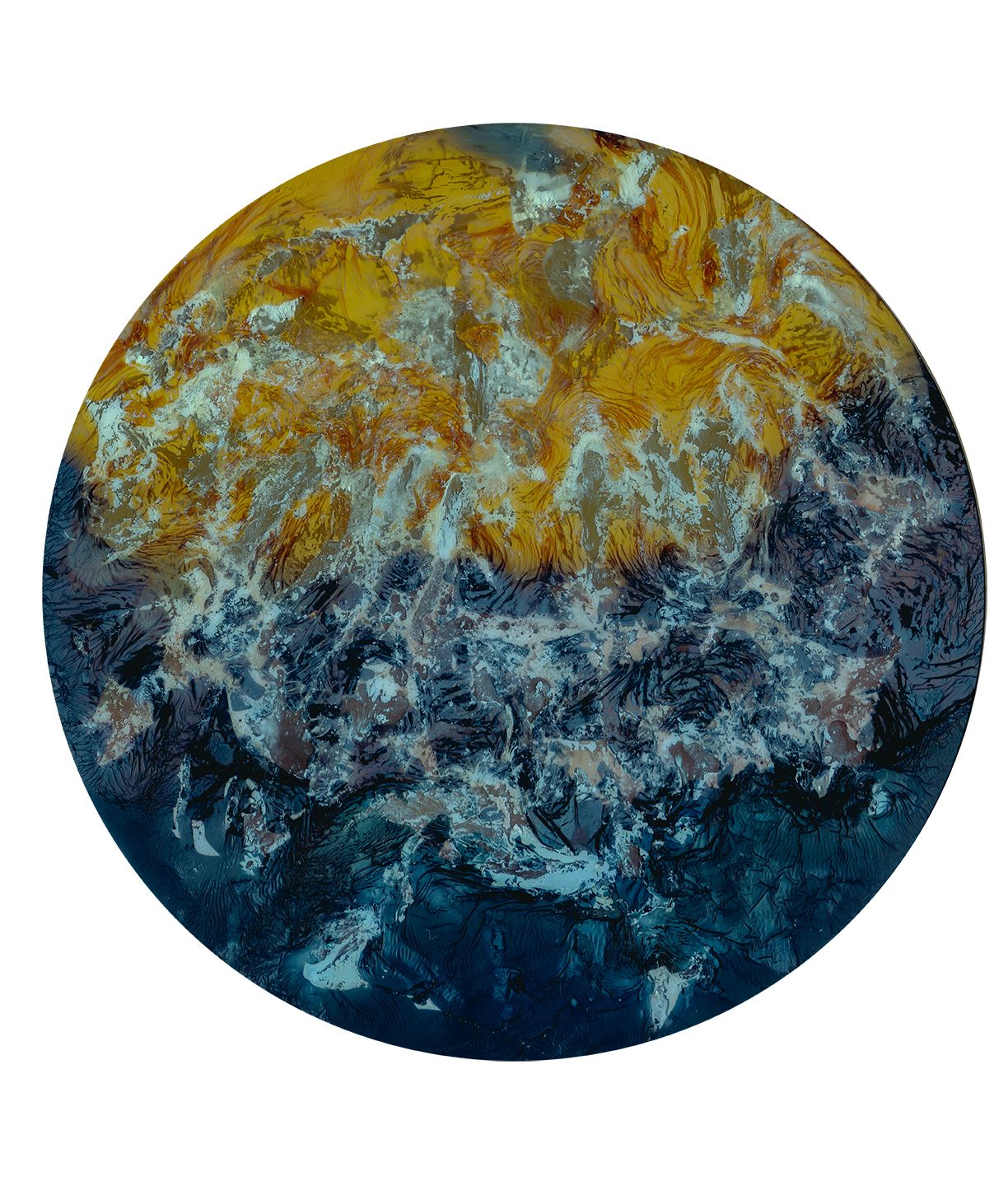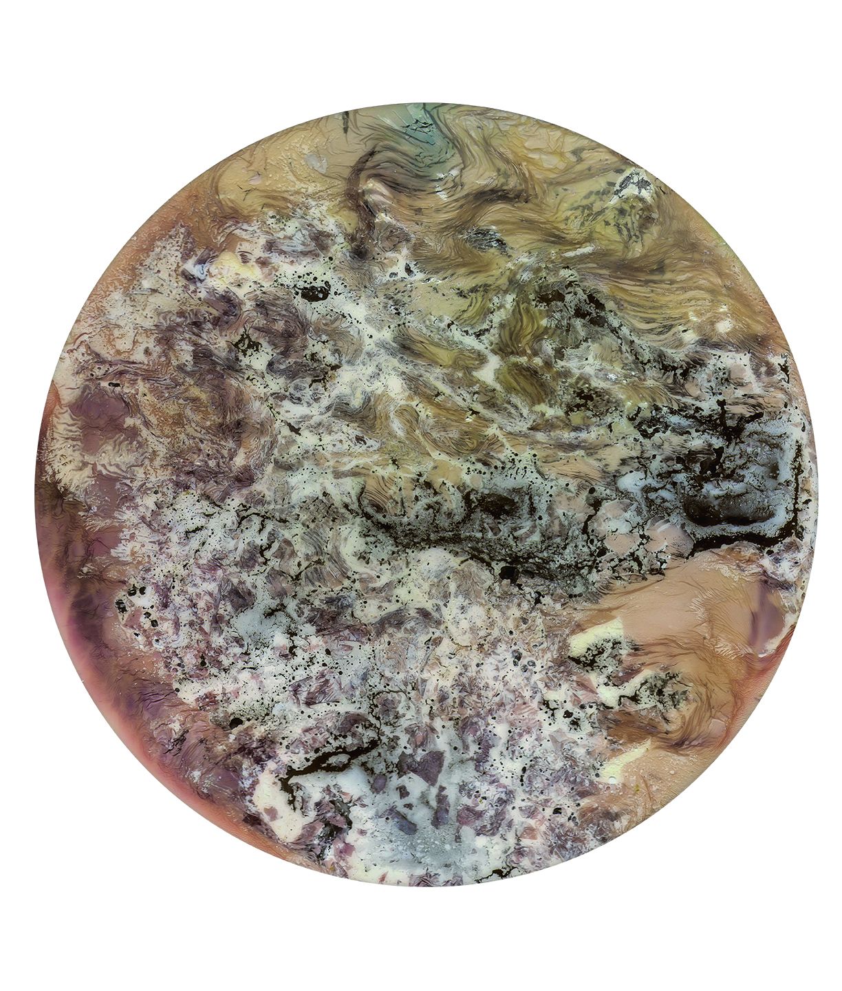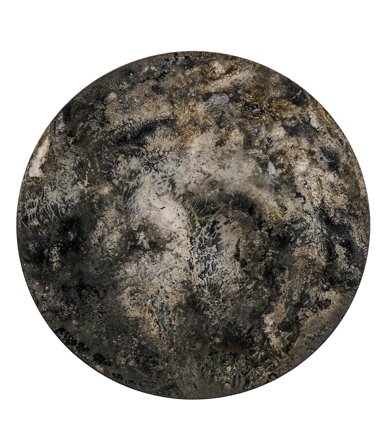By chemically destroying pictures of familiar people and comforting places, the project depicts living with agoraphobia and the desire to break that safe environment created by being held in a safe space. The pictures were injected with various chemical substances as alcohol and hydrogen peroxide as a symbolism of healing a condition that could get worse by living in the same environment, watching the same images one time after another. As a result, new "landscapes" or "realities" are created looking alike to hostile, chaotic, unexplored planets. Manipulated round frame edition Instant film