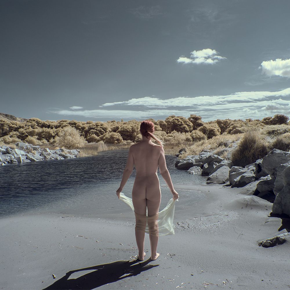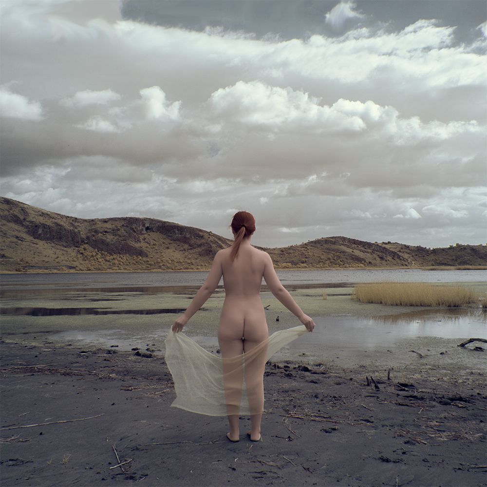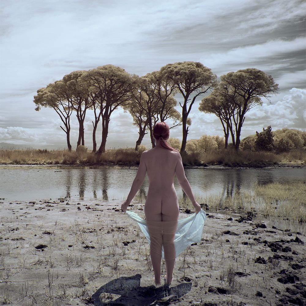 The landscape looks primitive and dreamy. Is it real? Is it new or is it maybe the old one, free from unnecessary burdens piled up over the course of time? However, it is certainly a scenic landscape where the human race can survive. The female figure, a descendant of Aphrodite of Willendorf, of the Cycladic figurines and the Renaissance paintings, becomes both the guide of humanity and the symbol of fertility, strength, and passion. Life goes on thanks to her and the power of water. Every end is a new beginning.