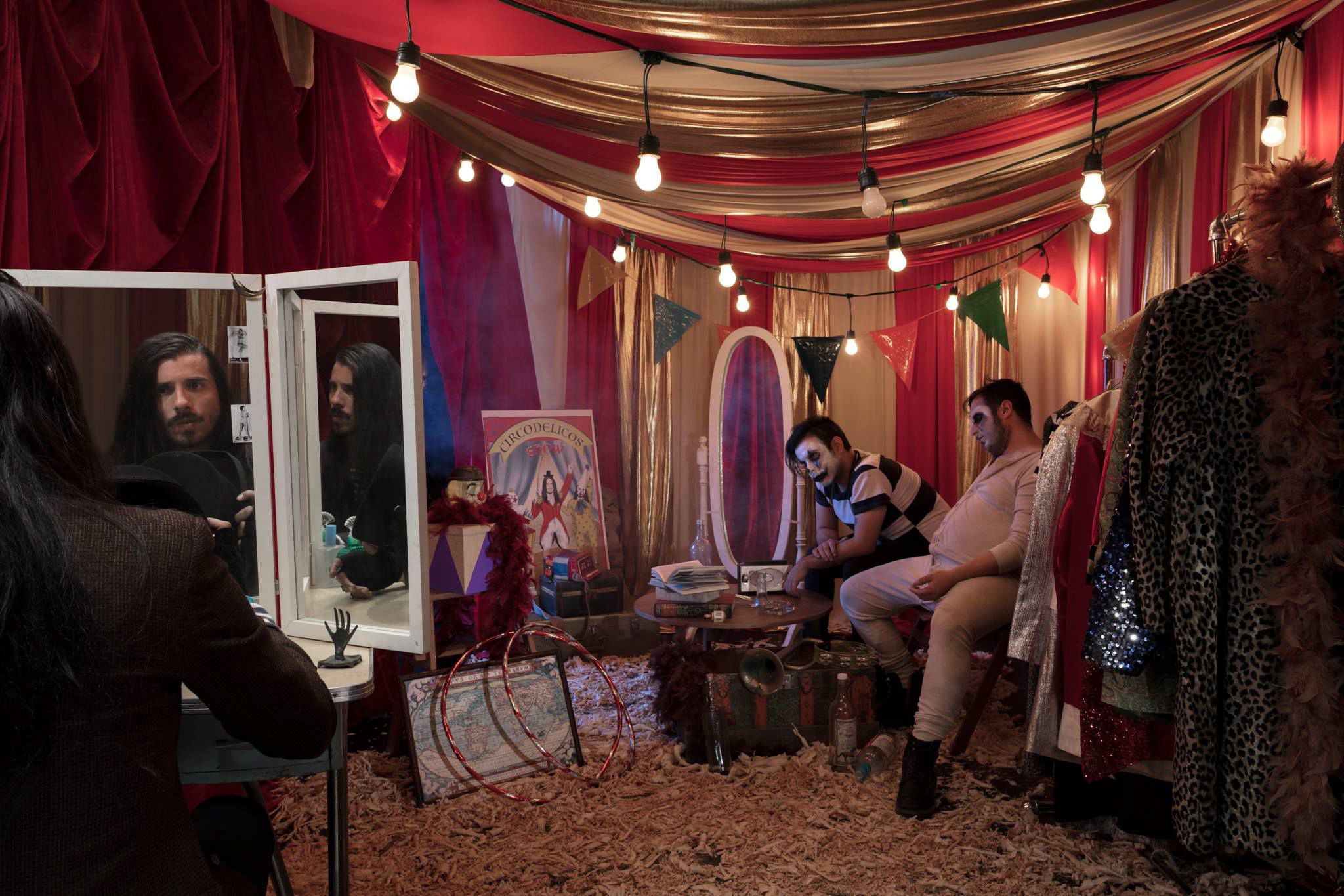 Inspired by early memories and moments I have shared with people who have been close to me, I start by writing a story from which I then choose a moment, usually a breaking point in such story and create the scene. I see my pictures as still frames from the cinematographic tape that would be my personal story, recreated in the way I remember or want to remember them. My subjects are all mexican artists, some of them are famous musicians, some in the graphic arts, some not as well known as others.