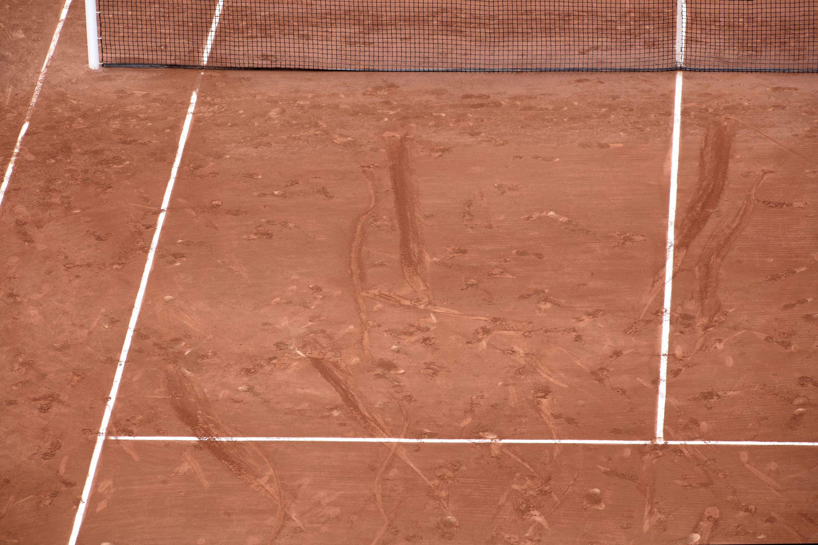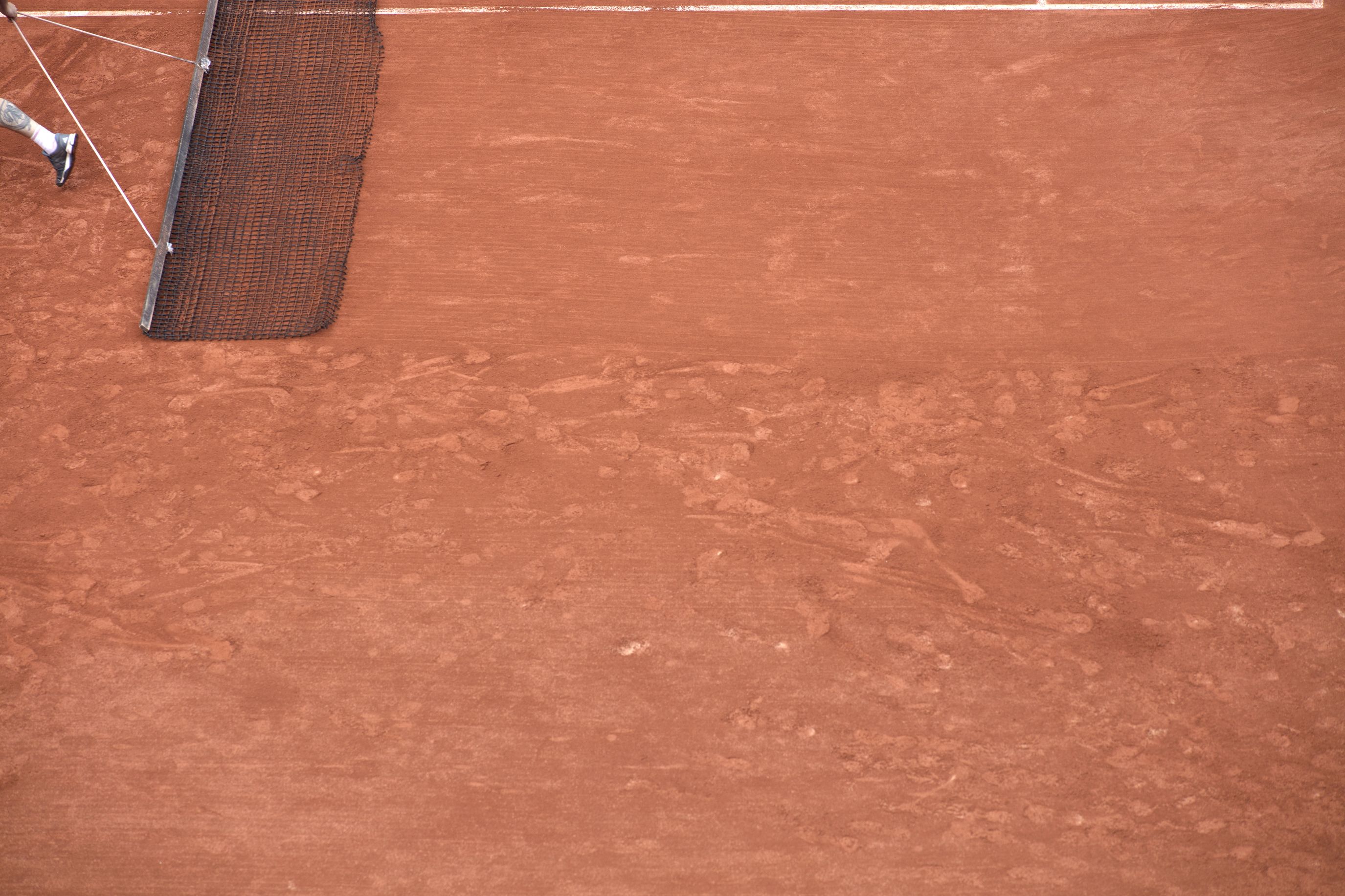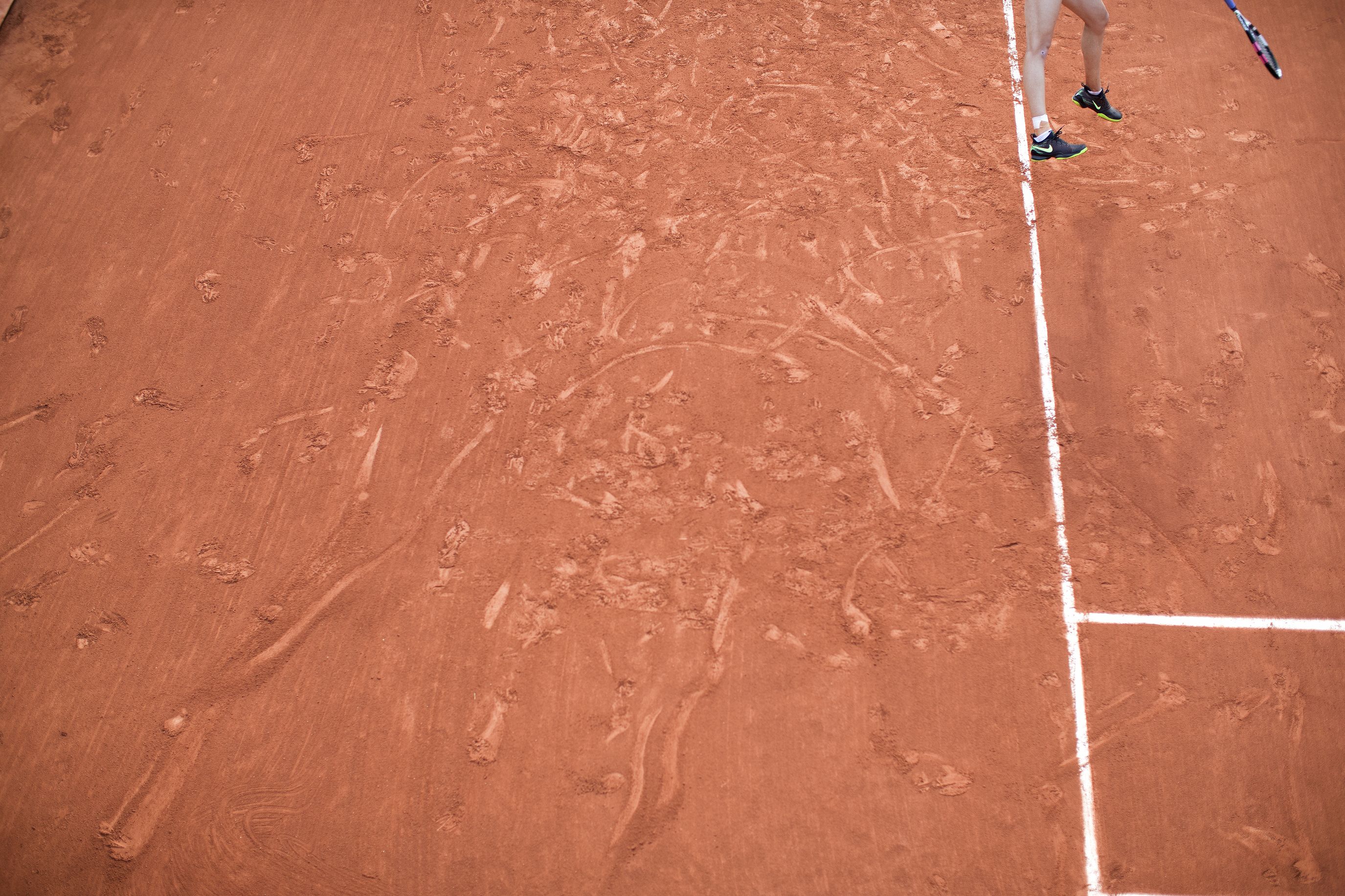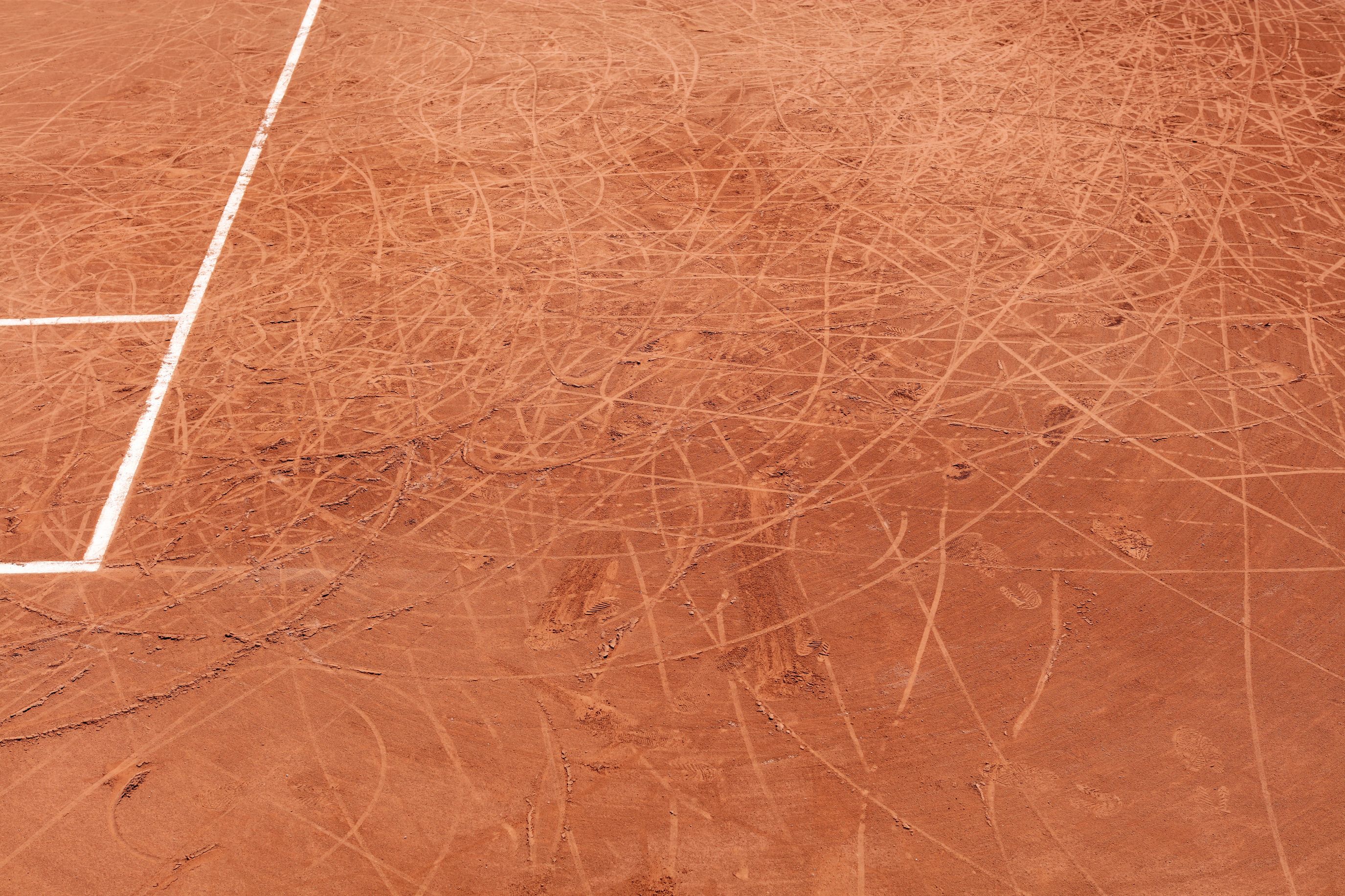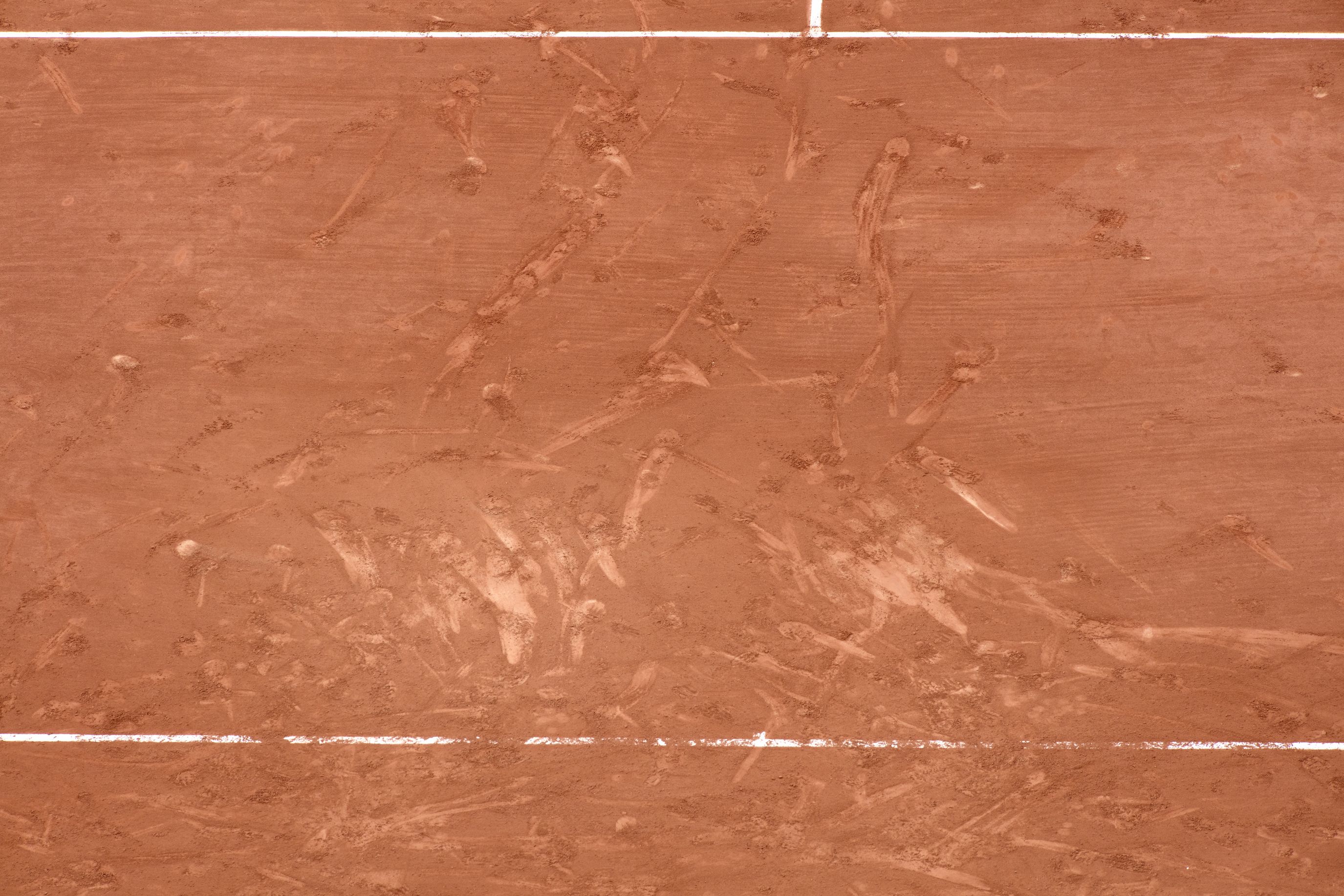 The clay courts of Roland Garros at the 2017 French Open Tennis Tournament provide a blank canvas for random lines and shapes as players slide, balls bounce and feet try and gain a grip in the soft dirt surface. The results are patterns in the clay, a canvas of unique artistic creation of the movement and endeavors of players as they battle for supremacy on the clay surface. At the end of the set the canvas is wiped, fresh and clean again, ready for the next creations on the clay surface.