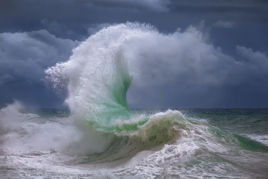 A giant wave during a seastorm in the Mediterranean Sea, Italy.