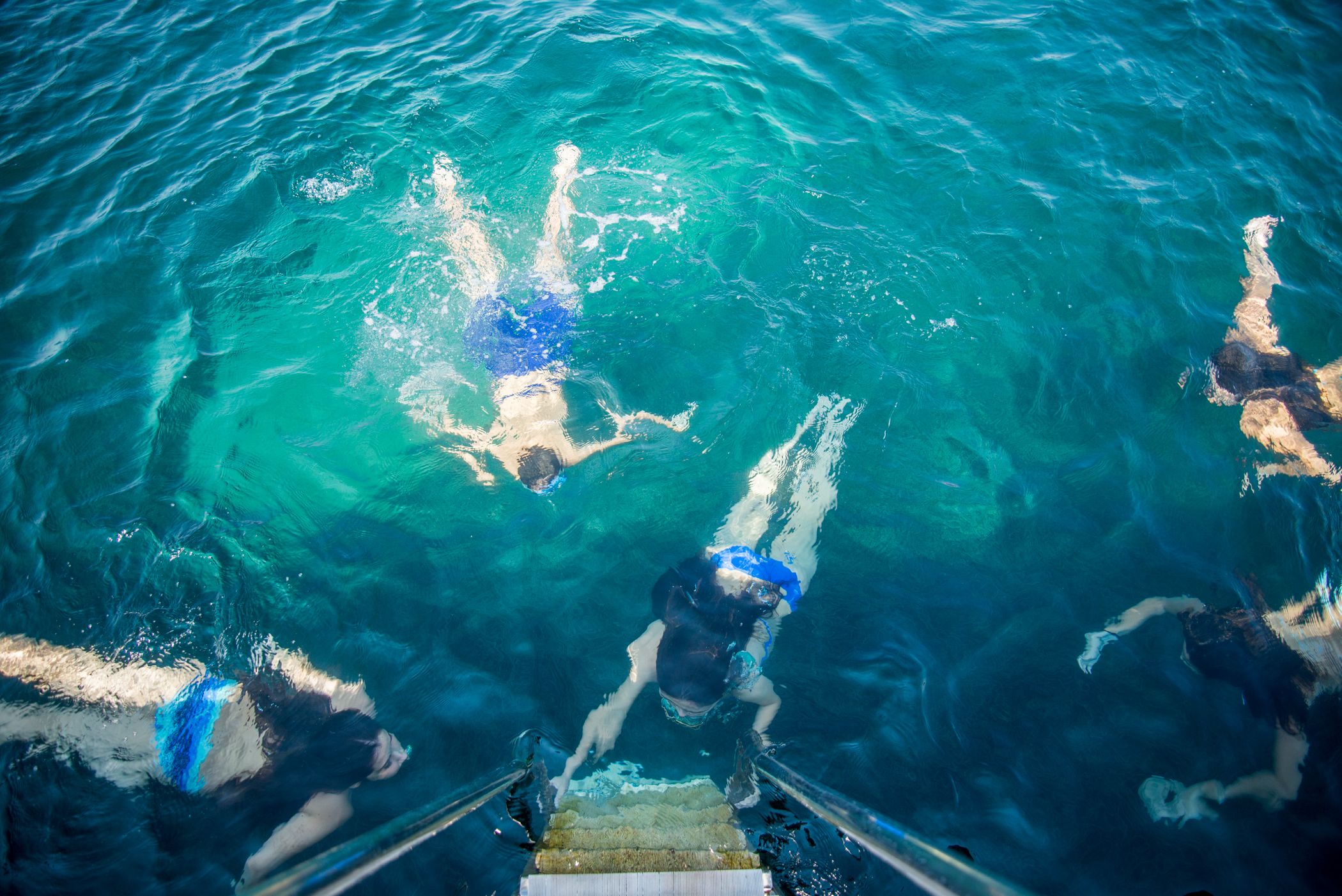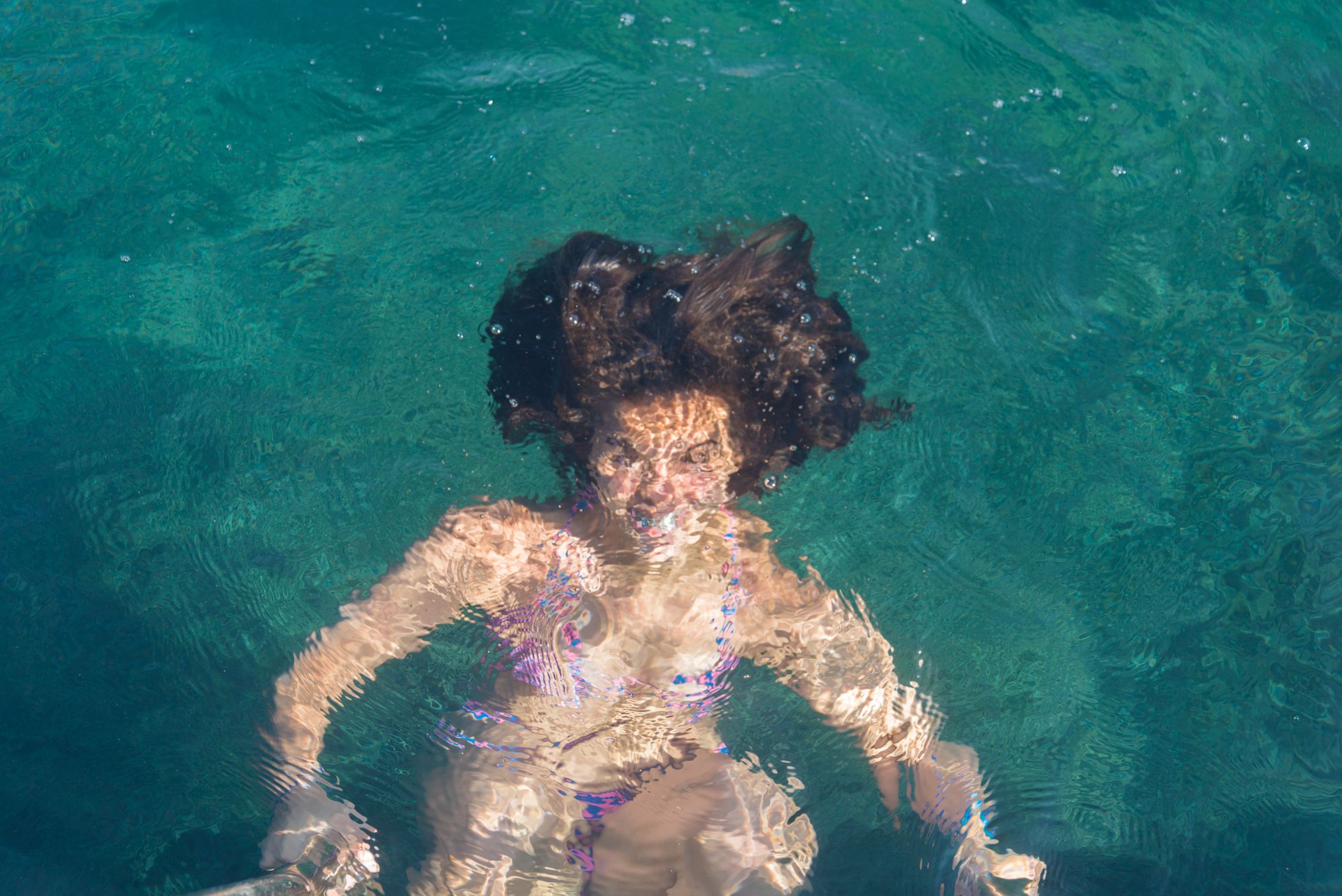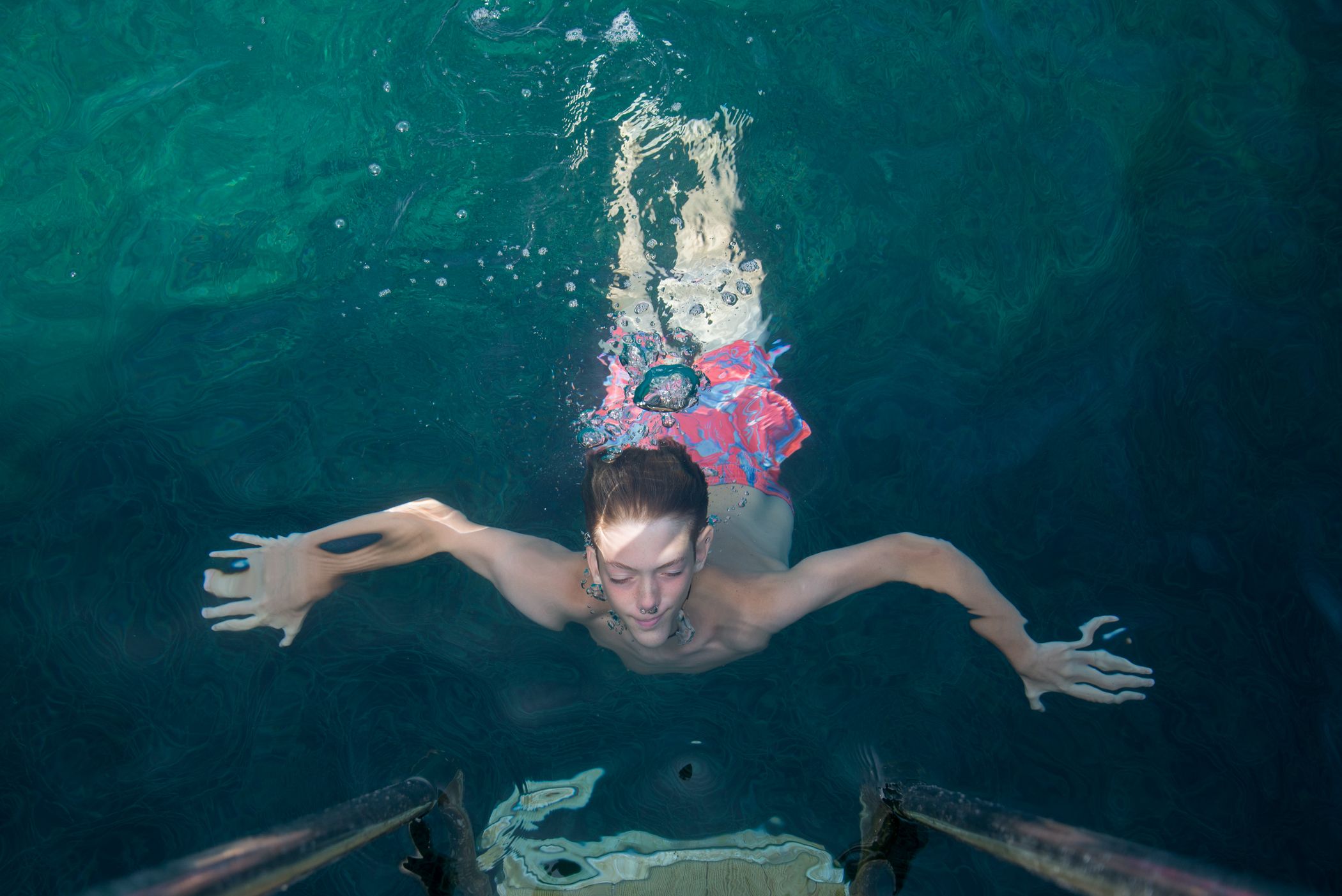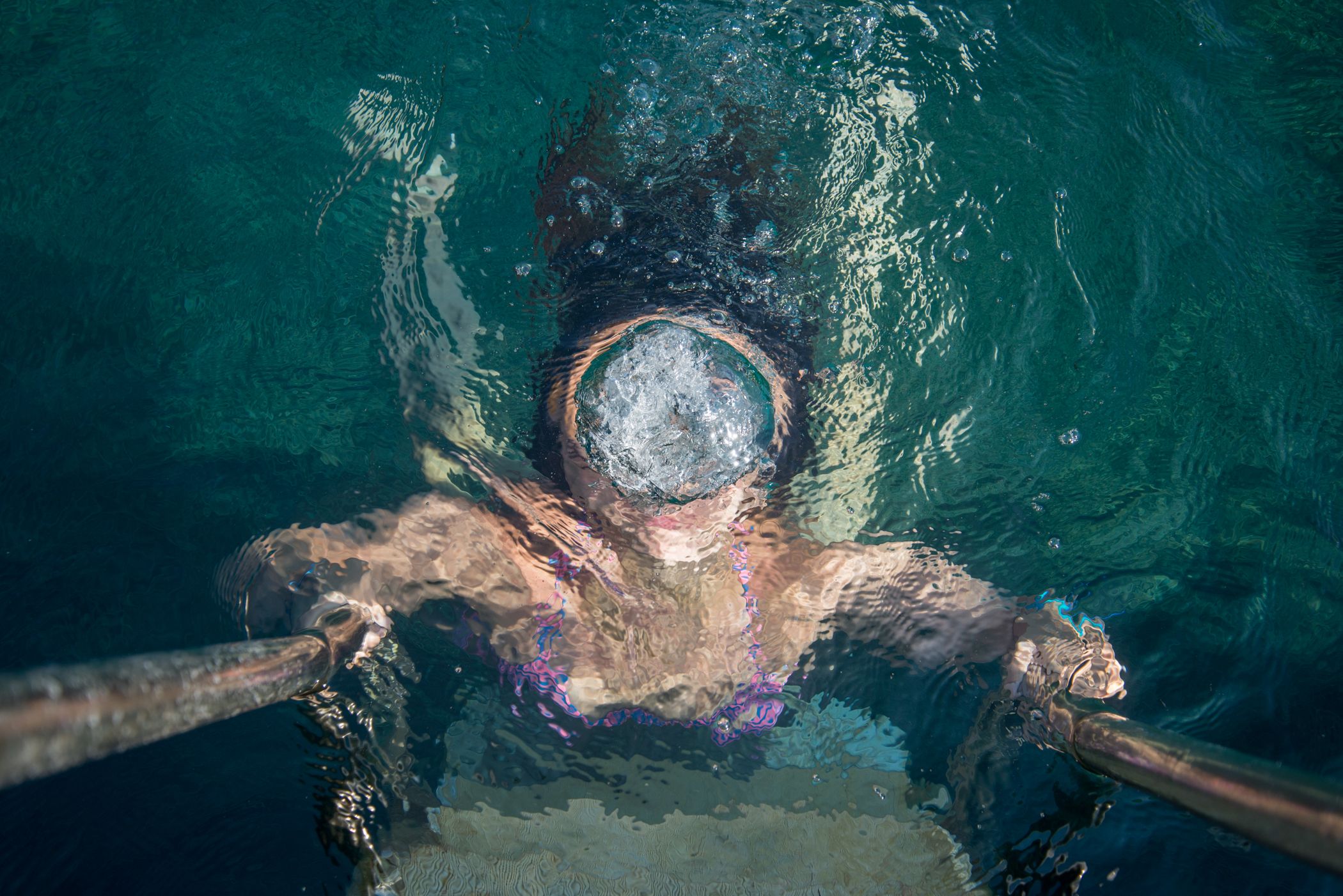 When I was a little girl, I used to look down the viewfinder of my father's Voigtlander and was mesmerized by the upside down world in it which felt so different. This time, I looked down to the sea and tried to catch a similar sense of unfamiliarity in the distorted beauty of human form under the water.