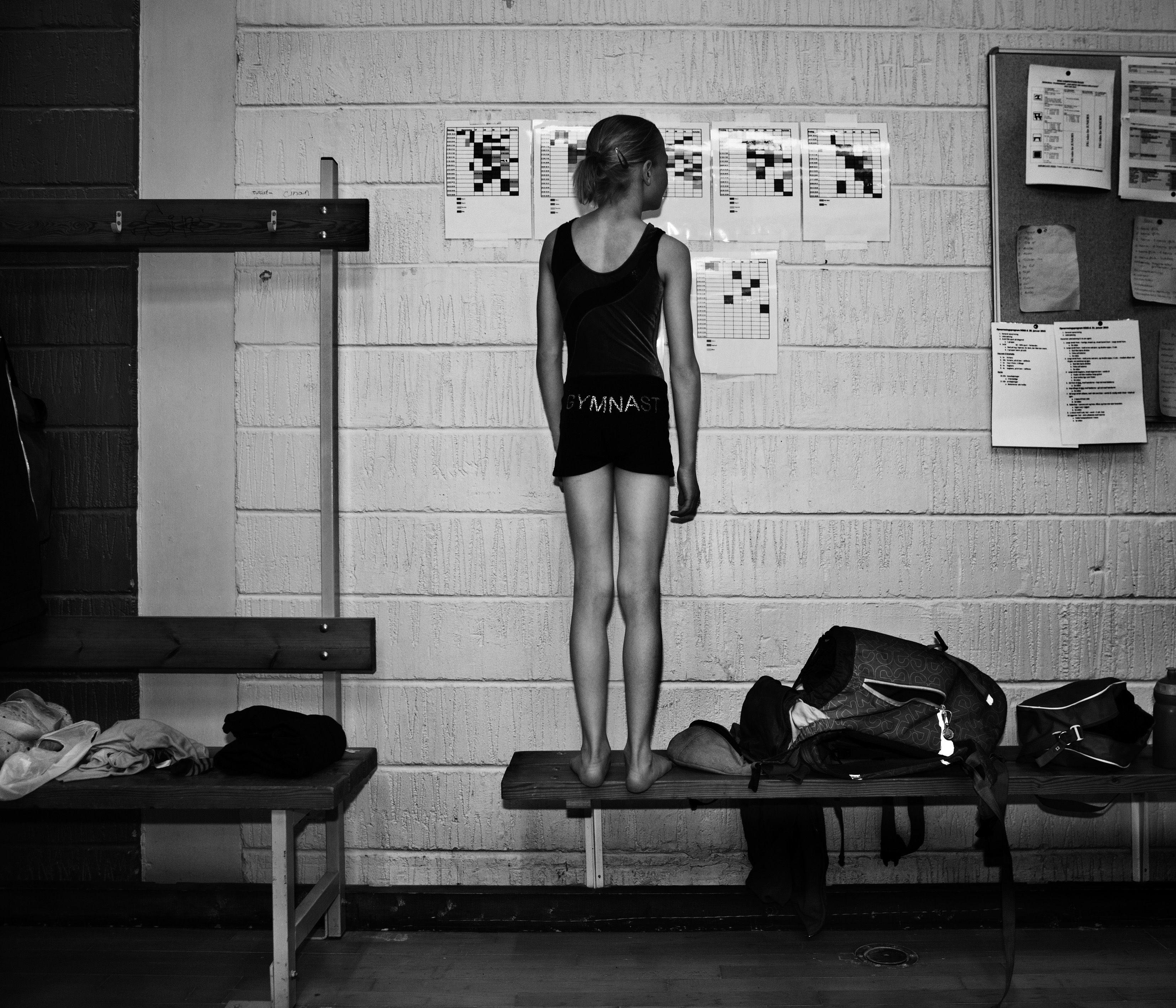 The atmosphere is good and there is loud music playing in the gym in Copenhagen where the elite girls train gymnastics 20 hours a week. You have to if you want to participate at the elite level. And they do. As a rule of thumb you have to put in at least 10.000 hours of training to compete internationally. Doing gymnastics you primarily fight yourself. Your fears, doubts and pain. But the youngsters help and encourage each other. So it might be a lone battle. But they fight it side by side.