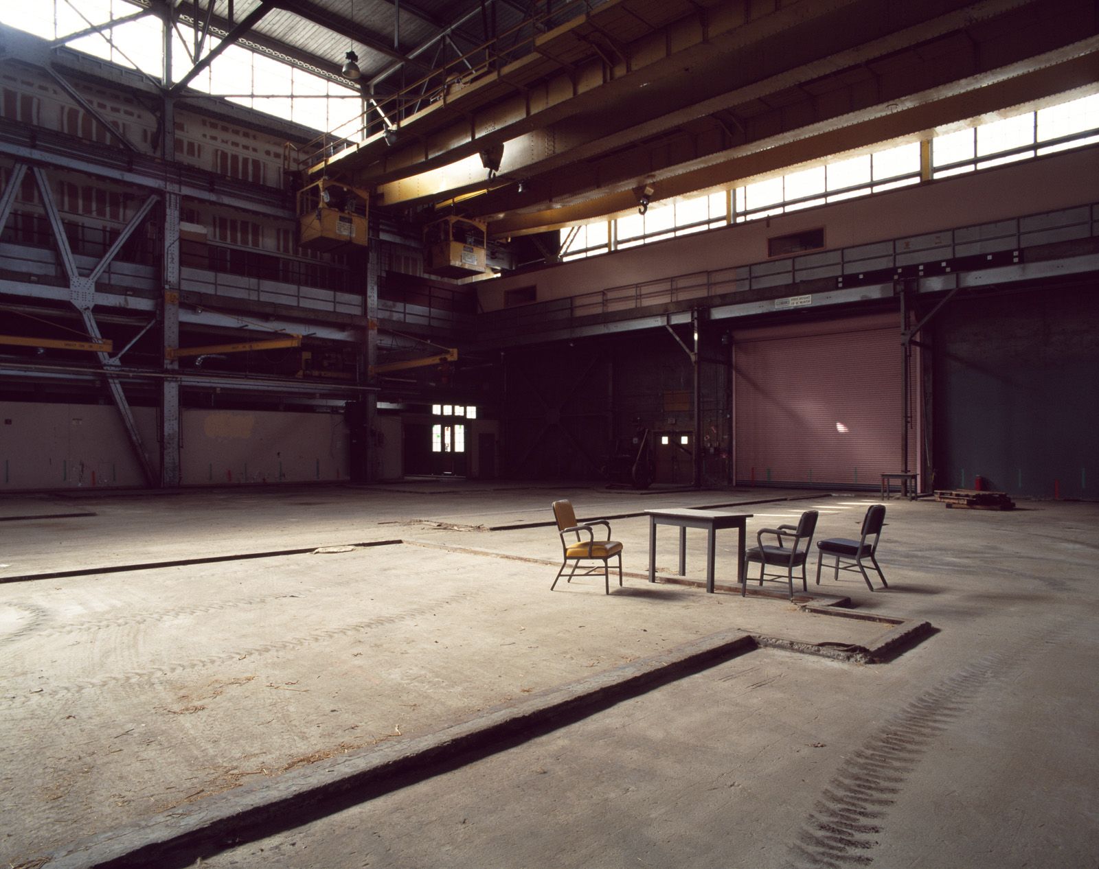 All of these images were shot as found during work on one of several ongoing projects documenting abandoned or closed prisons, mill sites, shipyards, and hospitals. It's remarkable how often chairs are left in fascinating and contemplative locations and groups.