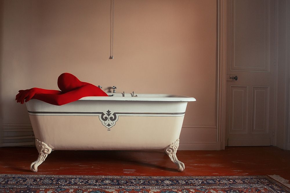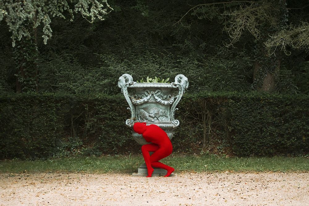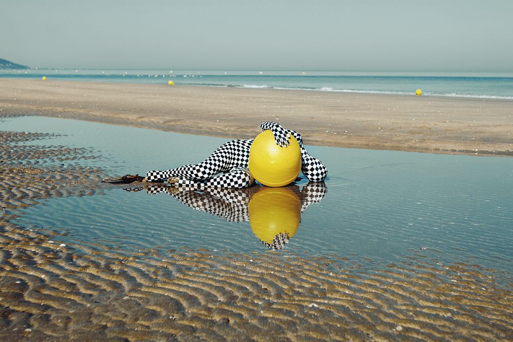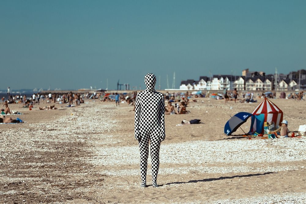 "Not from here" is a photography series which explores the theme of alienation which may occur when encountering "the unknown" (a place, a person or even a feeling). I arrived in Deauville, France, as a stranger; I represented the other - defined by he German sociologist Georg Simmel as someone both near and distant. I decided to express the strange–stranger binomial by wearing three costumes which would cover my whole body. Through the costumes, which made me both visible and invisible, I immersed myself in various locations of Deauville and interacted with them physically and emotionally.