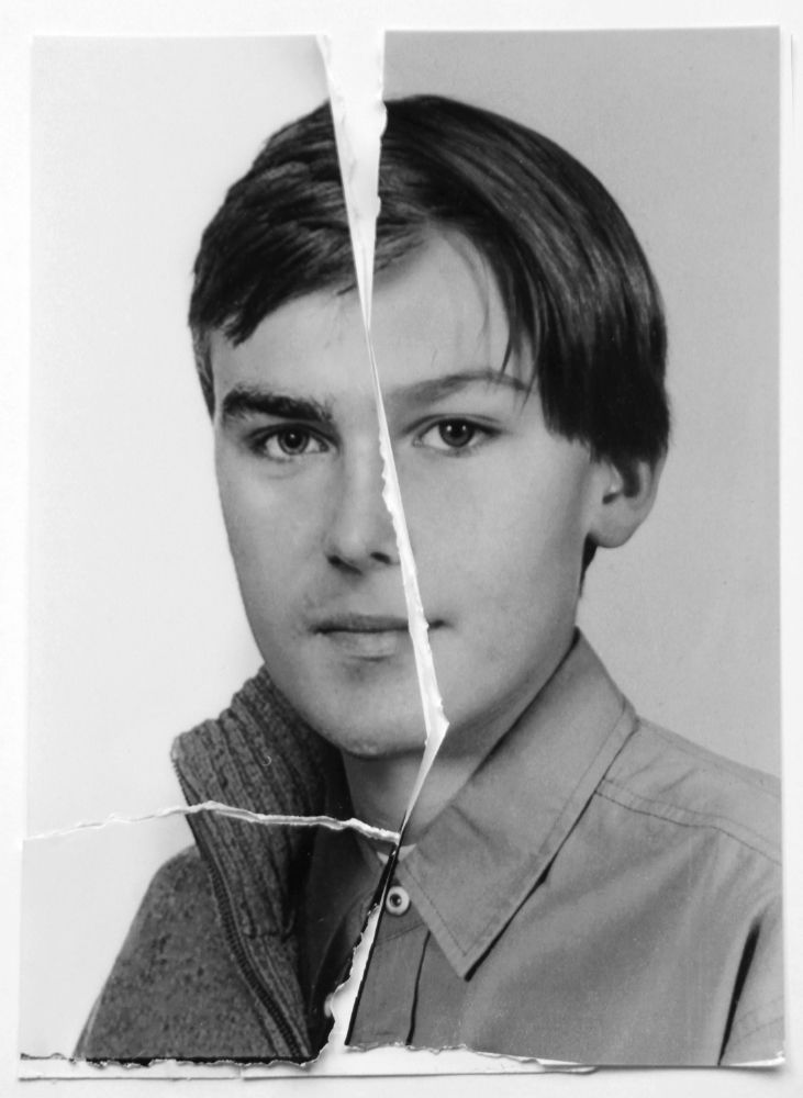 A series of portraits "yesterday and today".I wanted to capture the shift in time and changes which become apparent in man after several, more than a dozen and several dozens of years. These changes are not limited to appearance as they refer to the personality and life of each man. Lines symbolise the cleavage between the past and the present.The skin is our corporeal shell between what is in our spiritual and material.This body is seen as the human body is subject to biological processes and also as a social phenomenon.The tear has a spiritual dimension, too (...)