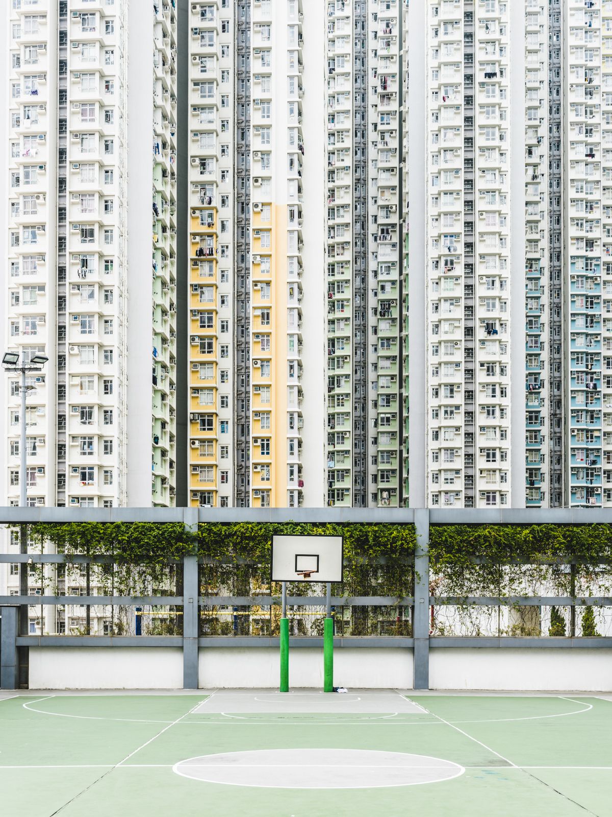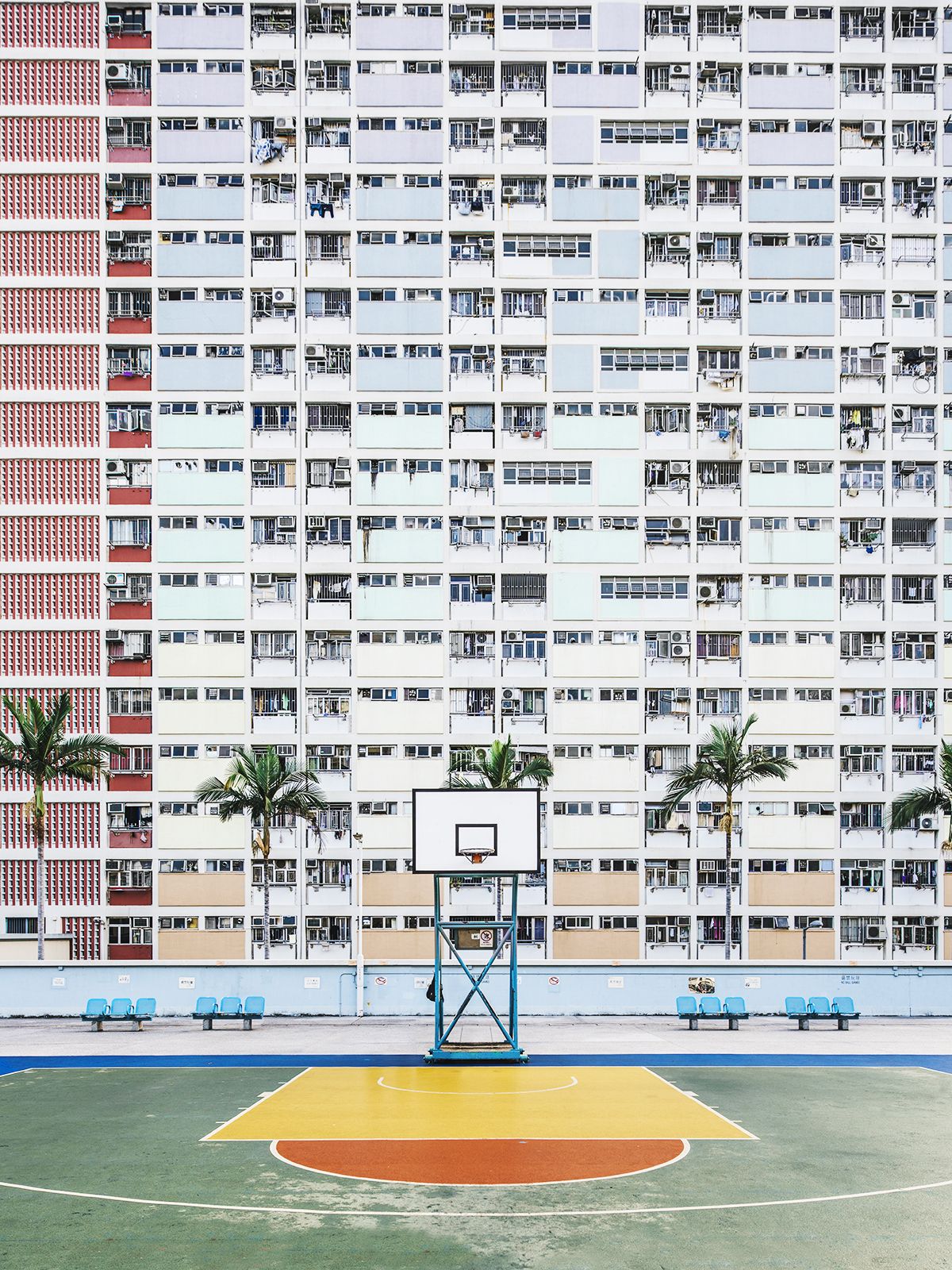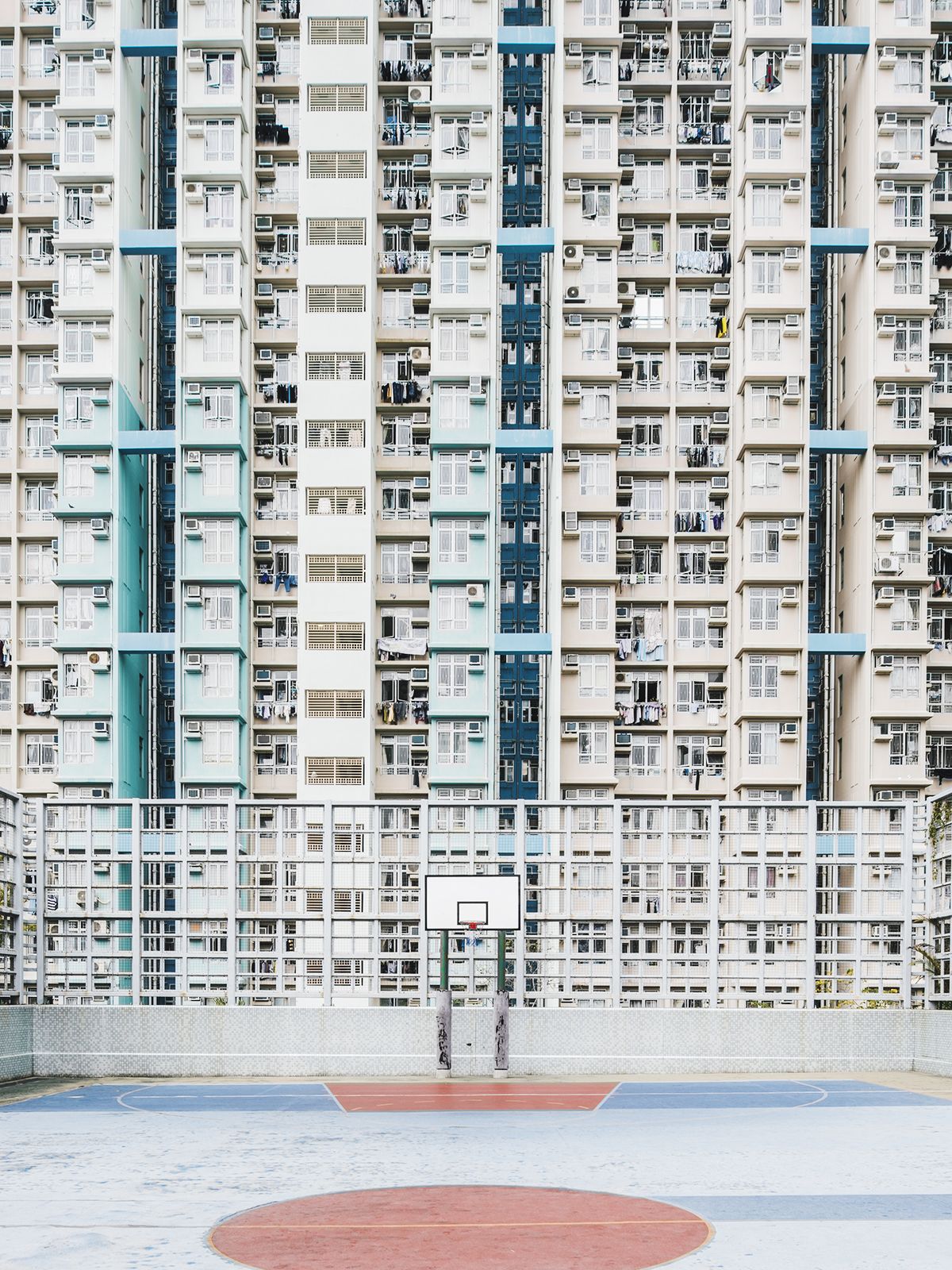 Population of Hong Kong loves sport, and its part of their culture. Even old people continue practicing Qi Gong every morning at sunrise. At every corner of the streets, behind any tower block, you can find a playground, a tennis or football court and more frequently a basketball court. These playgrounds are part of the urban landscape and perfectly melt with this massive and colorful architecture. Those photographs illustrate this mix between urban culture and the extravagant architecture of this inordinate megalopolis.