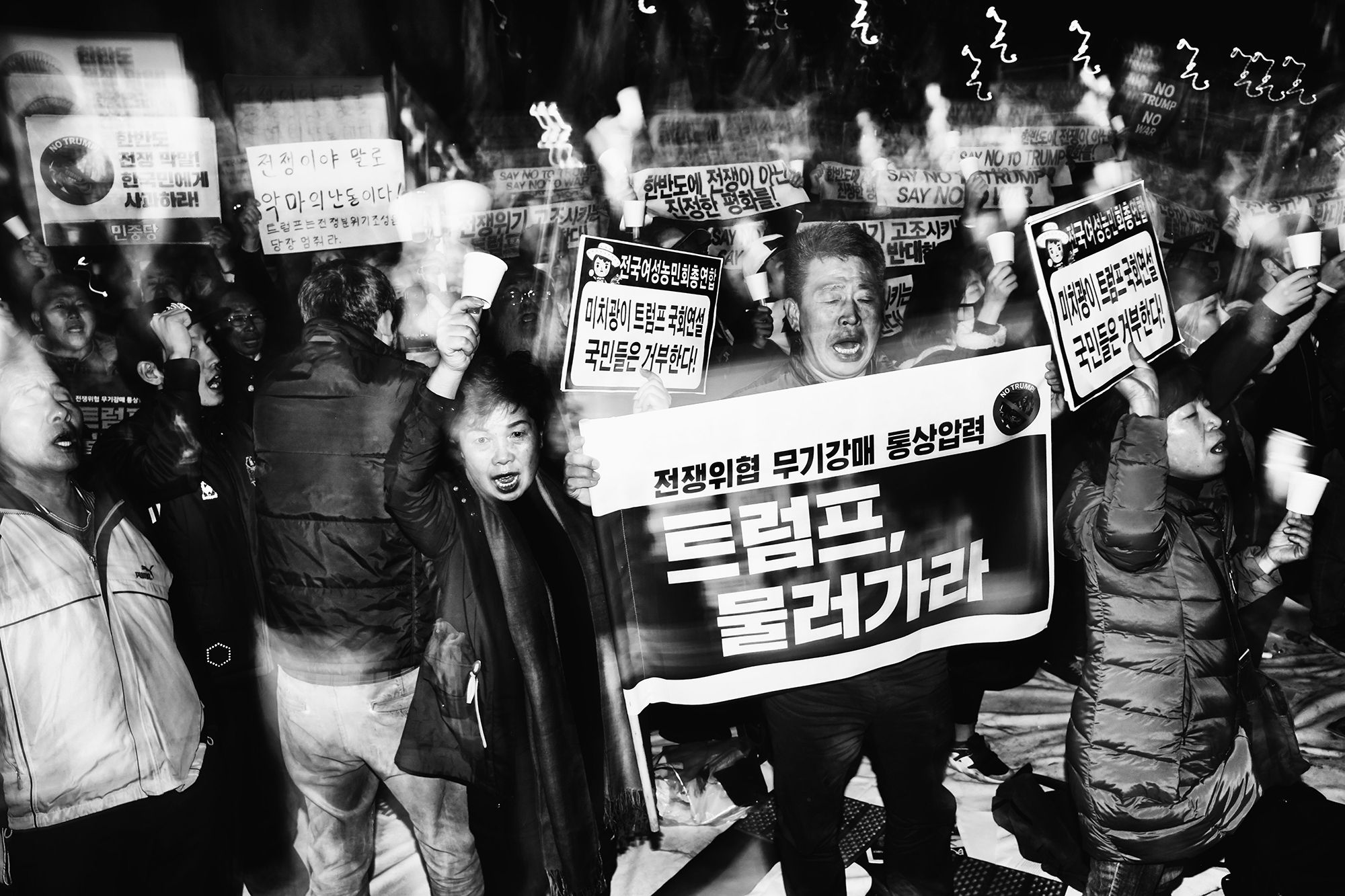 On November 7, 2017, South Korean President Moon Jae-in extended a “heartfelt welcome” towards US President Donald Trump as he arrived in South Korea for a two-day summit to reaffirm the Korea-US alliance. However, his stay did not pass without criticism. Labeling the US president a warmonger, the “No Trump Joint Action Task Force” organized rallies against his visit. Made up of 220 left-wing political parties, civic groups, labor unions and student groups, the association claimed his impulsive remarks towards North Korea heightened military tensions on the peninsula.