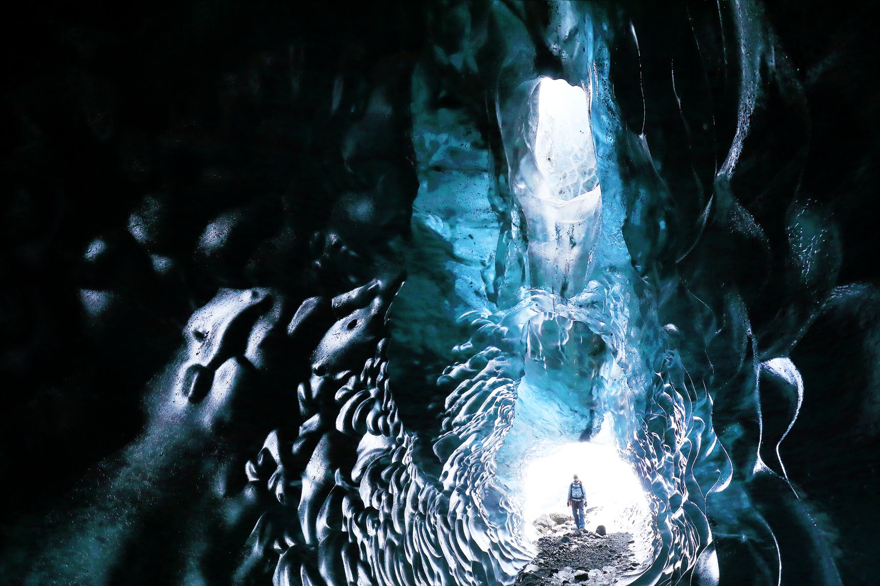 Glacial sculptures drawn by the summer rivers. South Iceland, February 2018.