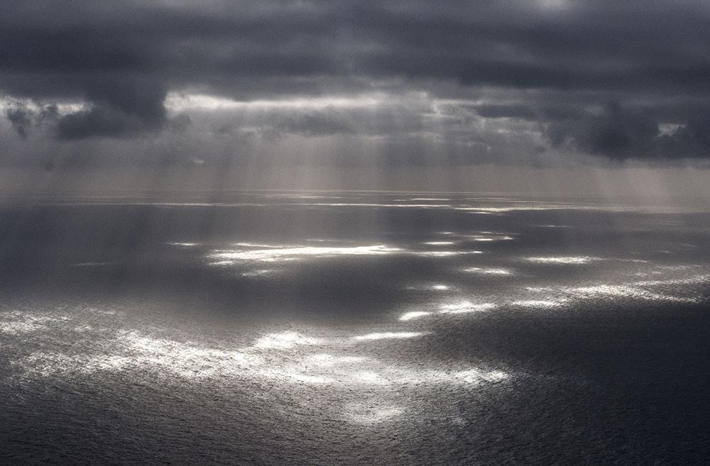 Photo was captured over the Atlantic Ocean under the impression of entering light.
