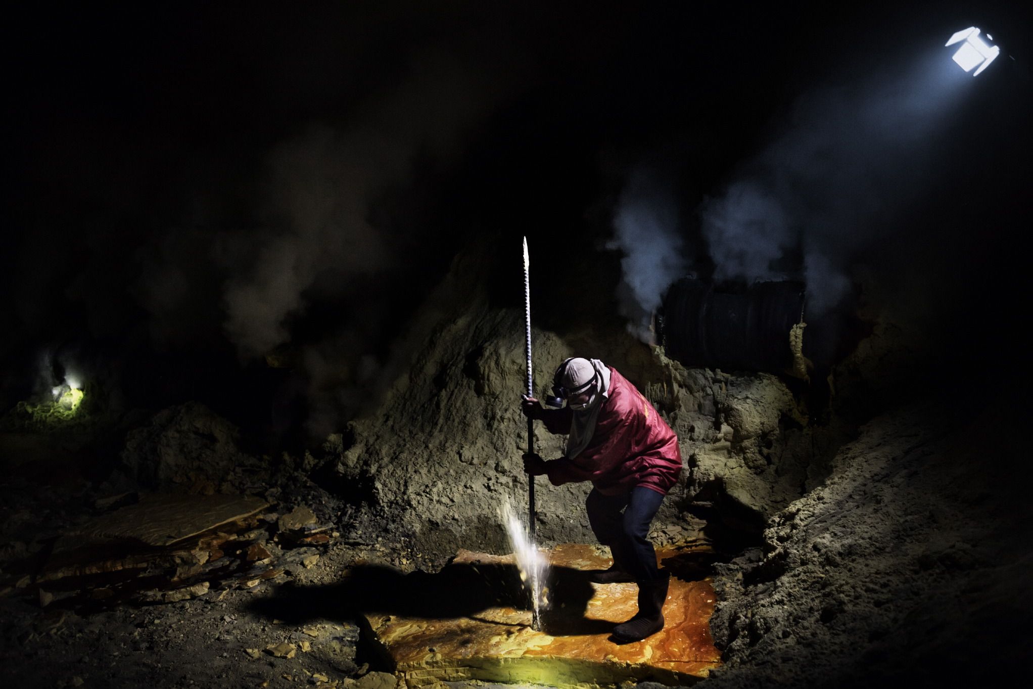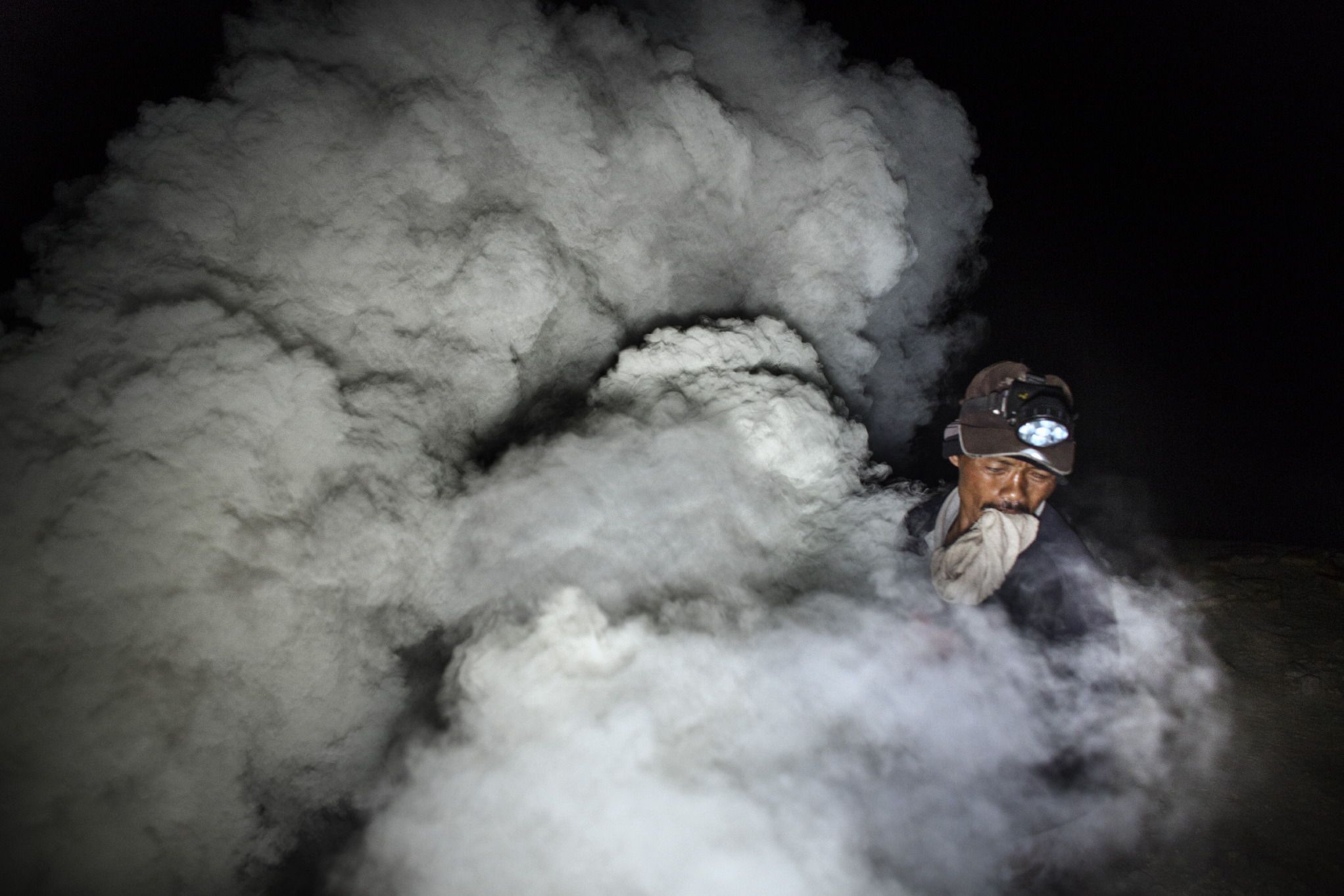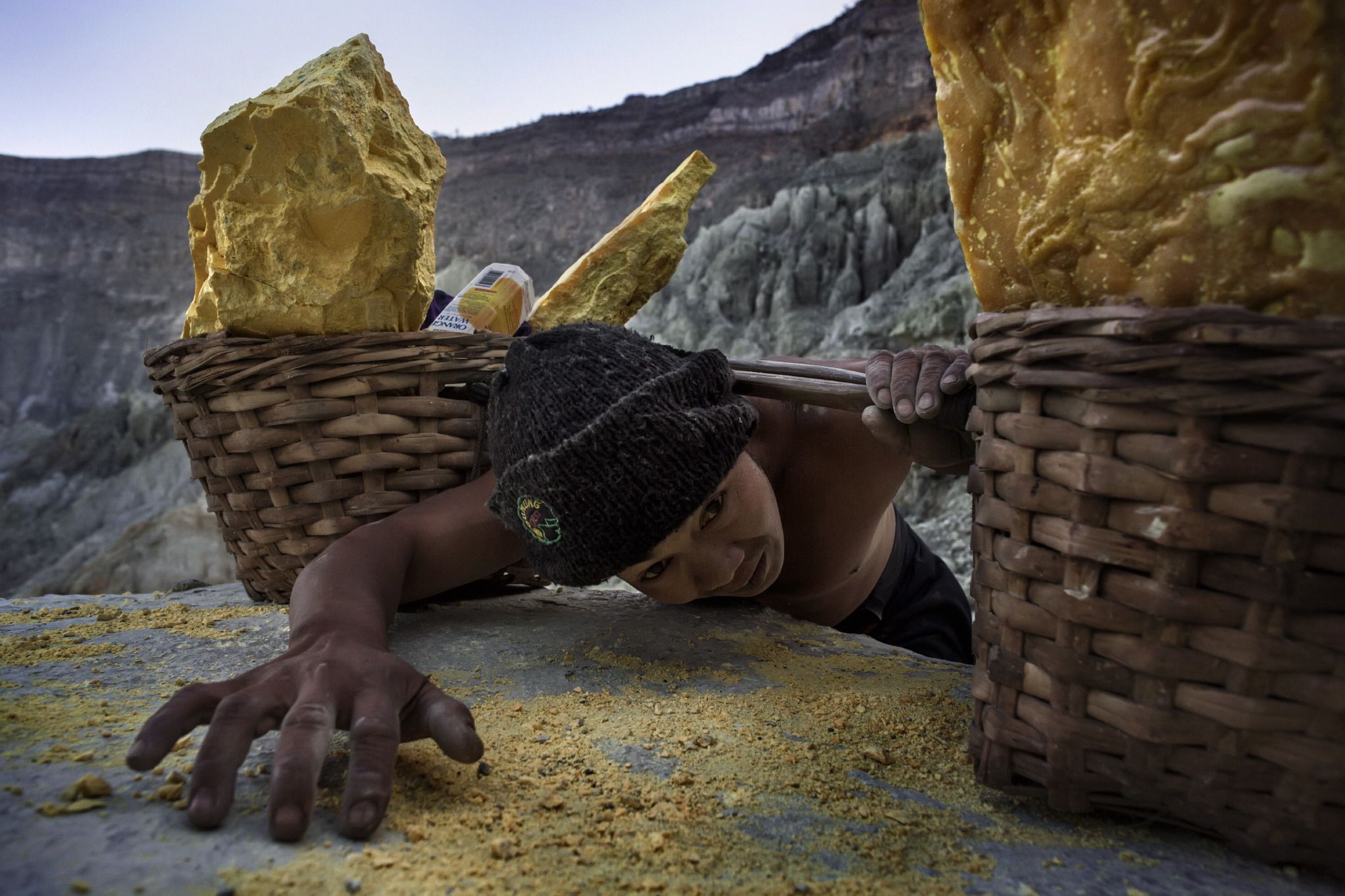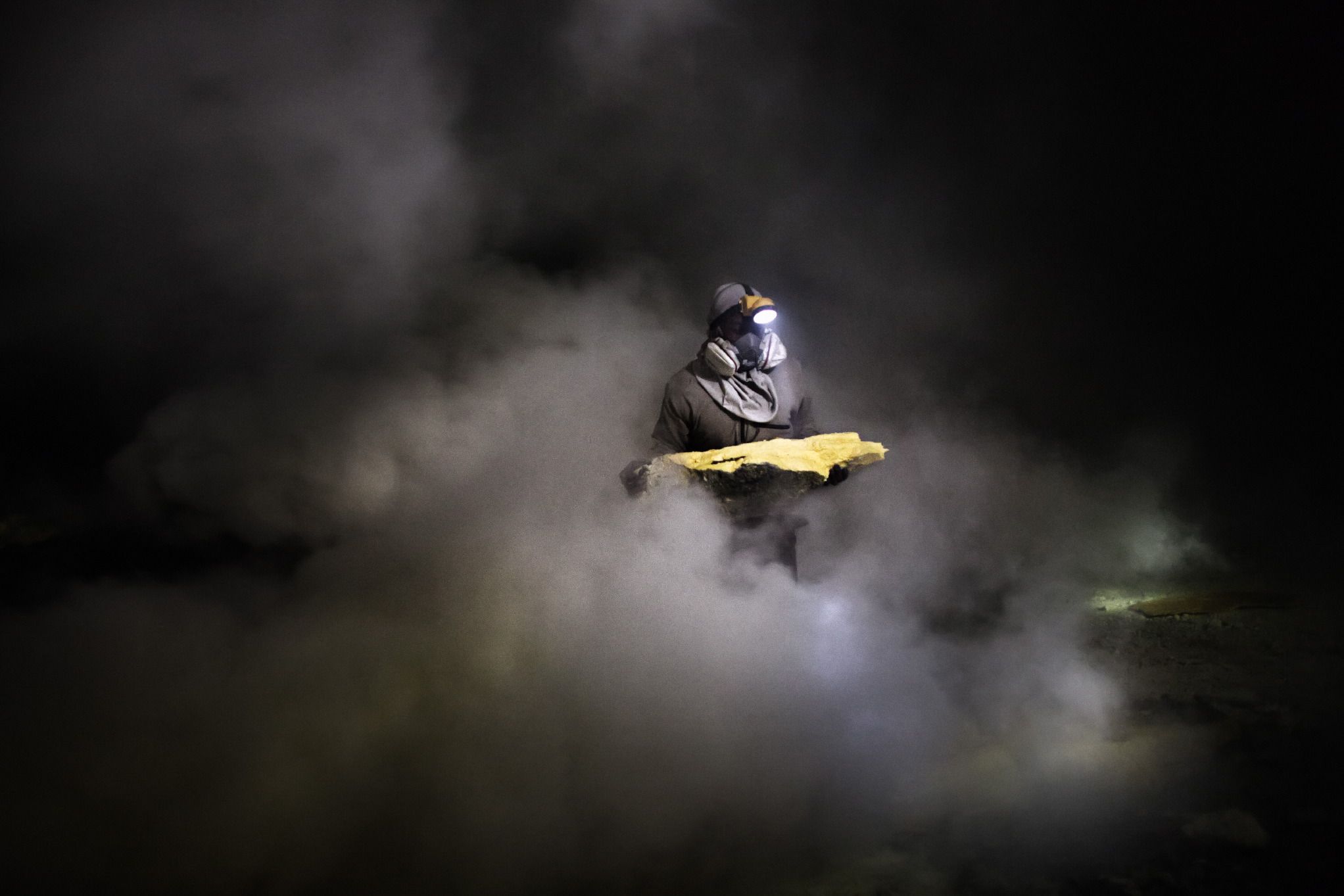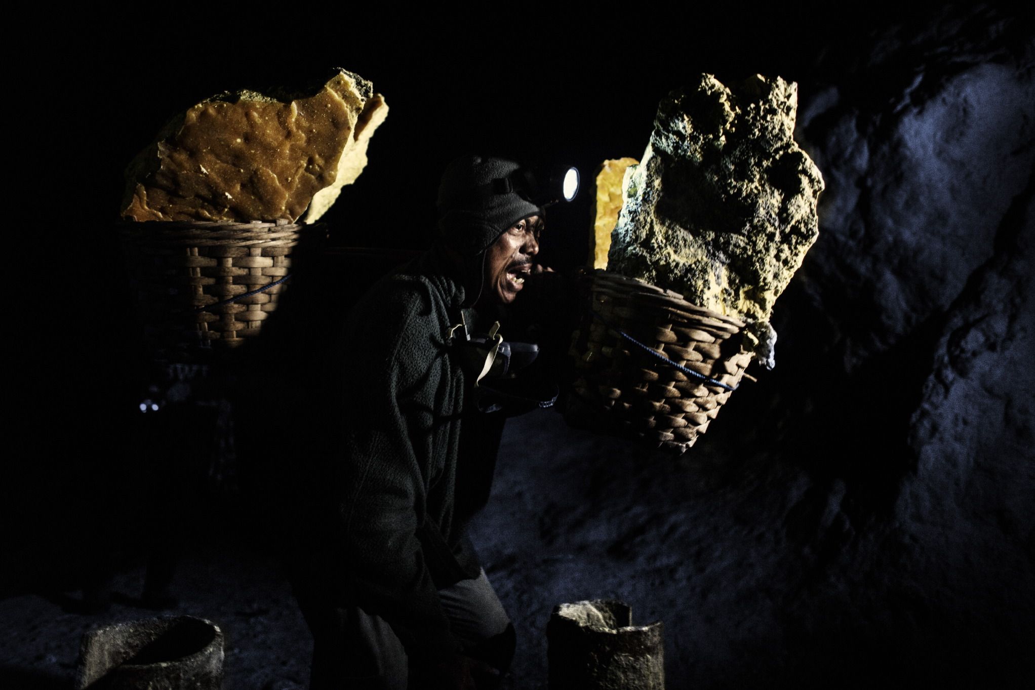 Inside the womb of the Ijen Kawah volcano, in Eastern Java, Indonesia, the miners go deep in search of the Devil's gold, as sulfur has always been known. Every day, They climb up three kilometres and then head downwards until the opening of the crater where the sulfur crystals lie. Nine hundred meters deep towards hell, defying the unbearable heat, rarefied air and the darkness, without any protection.The sulfurus gas hits the throat, burns the lungs, makes tears spring from the eyes.