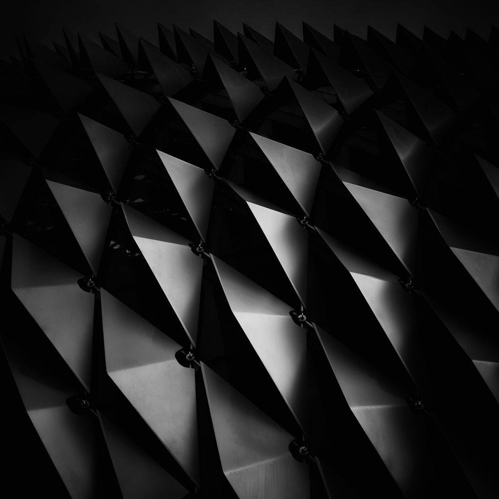 In this series called Elements, I focus my attention on the detail of various buildings. In each case, I was drawn to the texture of the structures' exterior and the way they rendered light and shadow. I used Chinese Elements of water, wood, fire, earth and metal - the five-fold conceptual scheme that many traditional Chinese fields use, to explain a wide array of phenomena - to capture the distinct elements of each building.