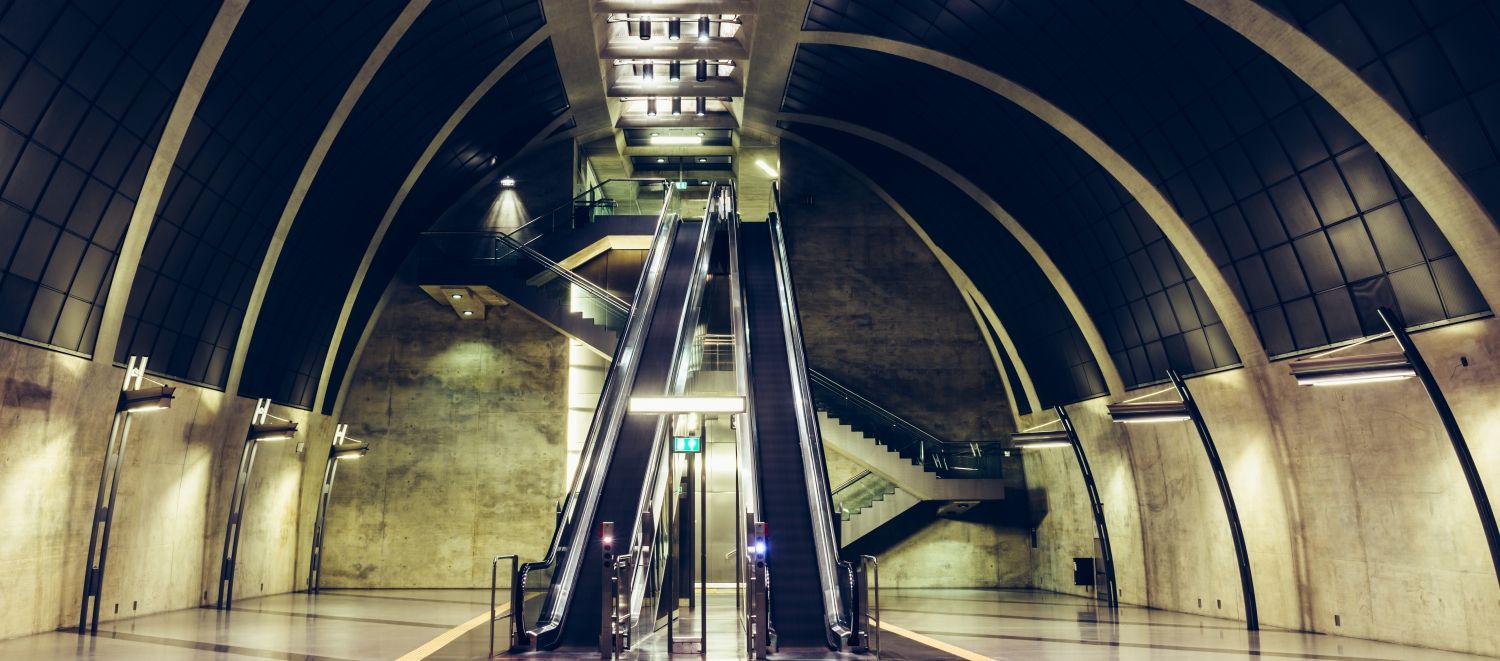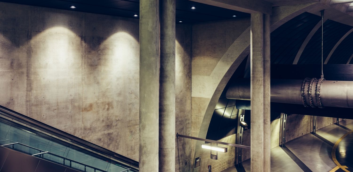 The new underground train station at the Heumarkt in Cologne, Germany designed by the Architekturbüro Prof. Ulrich Coersmeier GmbH.