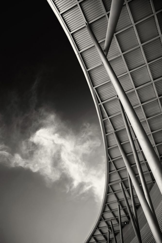 Photo nadir, of the metal roof of the aqualon shopping center of Huelva, of the prestigious architect José Alvarez Checa.