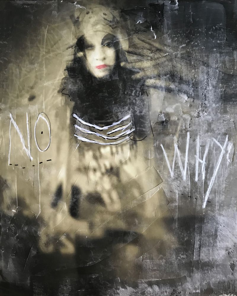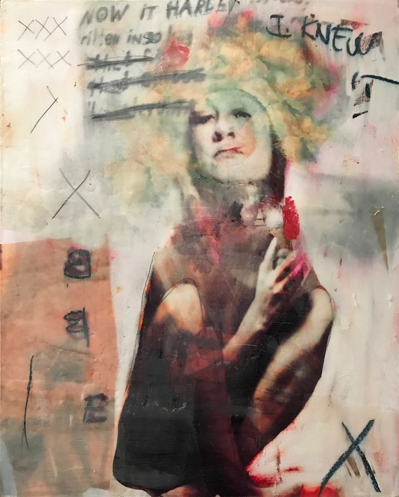 Each image: 20" x 16" archival pigment print on Hahnemuhle Photo Rag Ultrasmooth, mounted full bleed to 1.5" thick, gesso'd cradled wood panel, then altered with hand coloring and coated with encaustic media. Self-Exposure walks the line between reality and artifice; between soul searching and social commentary. Although each image is an introspective and expressive look at my own persona, each is also a critique of commonly held societal beliefs about feminine identity and contemporary expectations of women.