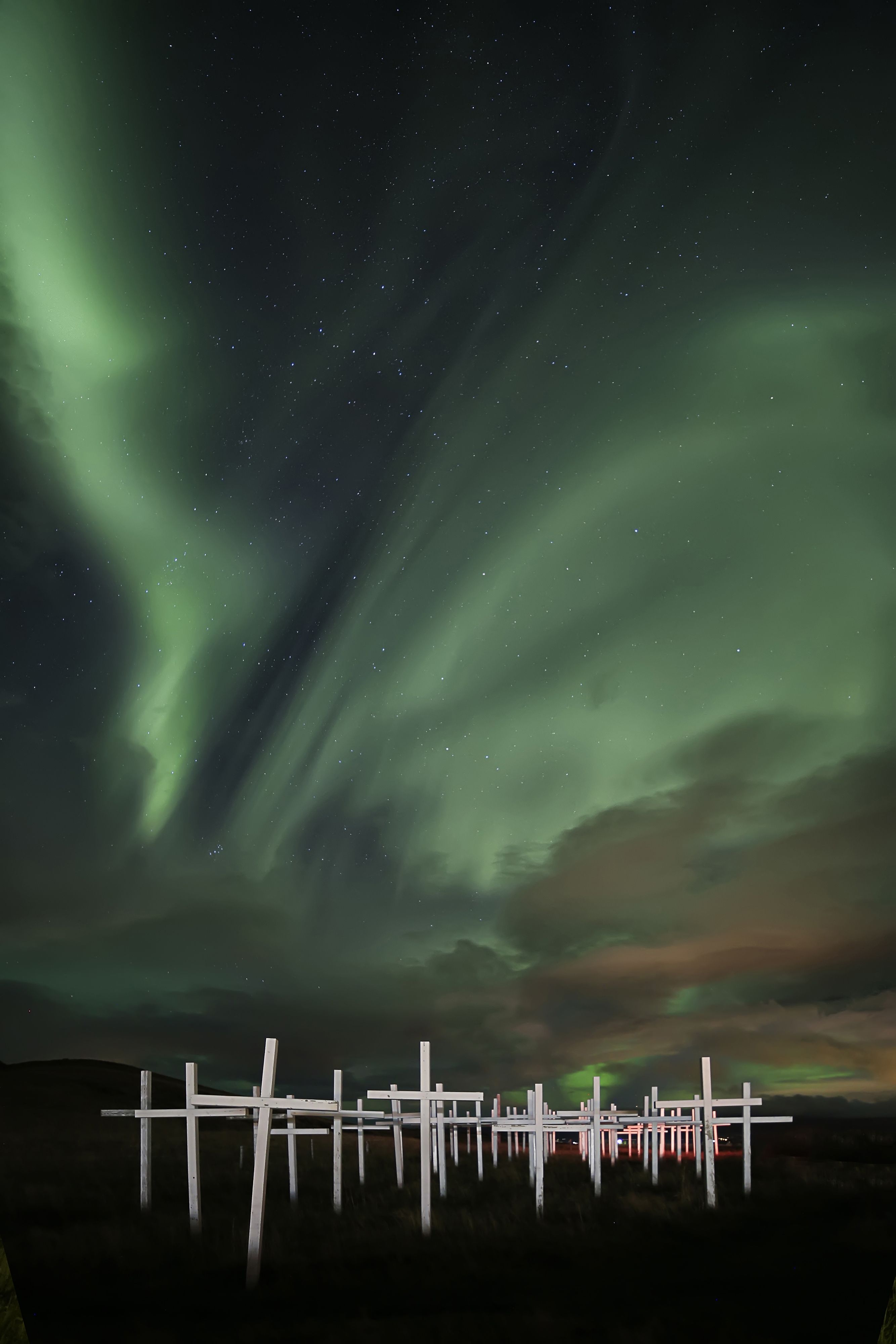 While I was in Iceland I did not have much luck with the auroras, there was only activity on the last day but almost all of Iceland was quite cloudy, on the map I found the village of Hveragerdi and I traveled there, looking for locations I found these crosses that are a monument to some soldiers.