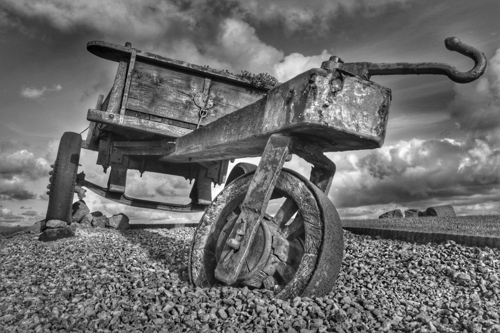 This old trailer is standing on the sea embankmet along the Dutch coast.