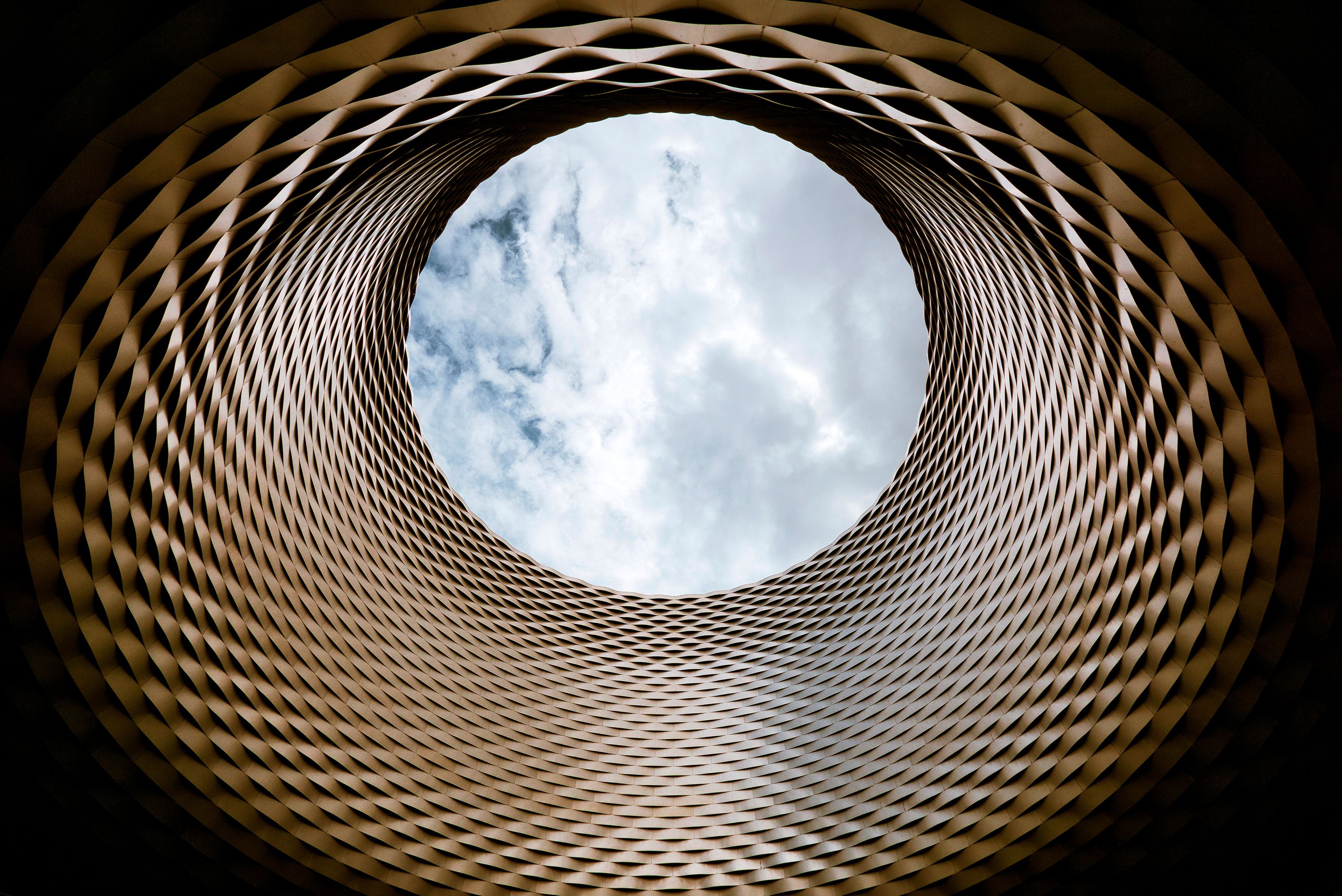 The futuristic fasade of the "Messe Basel" in Switzerland. The structures changes each step you go.
