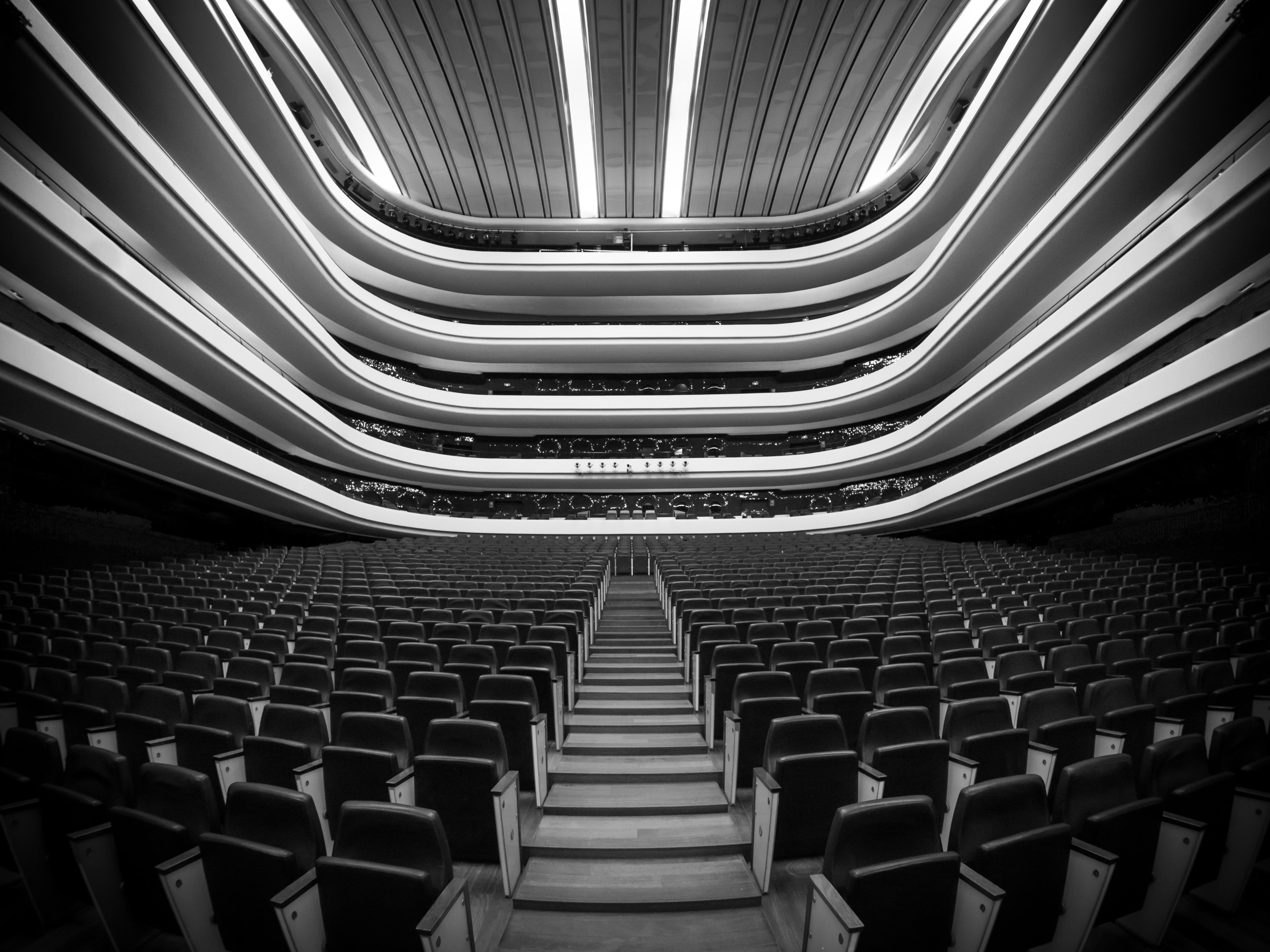 The main sala in the Palau de les Arts Reina Sofia Opera House in Valencia, demonstrating Calatrava's eye for sweeping curves and symmetry.